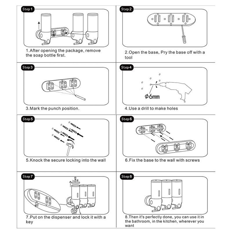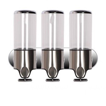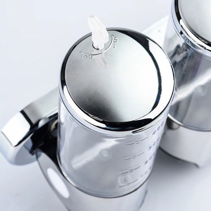 Dispensador Manual de Sabonete Líquido/Shampoo/Multifuncional Suporte Parede prateado com garrafa transparene