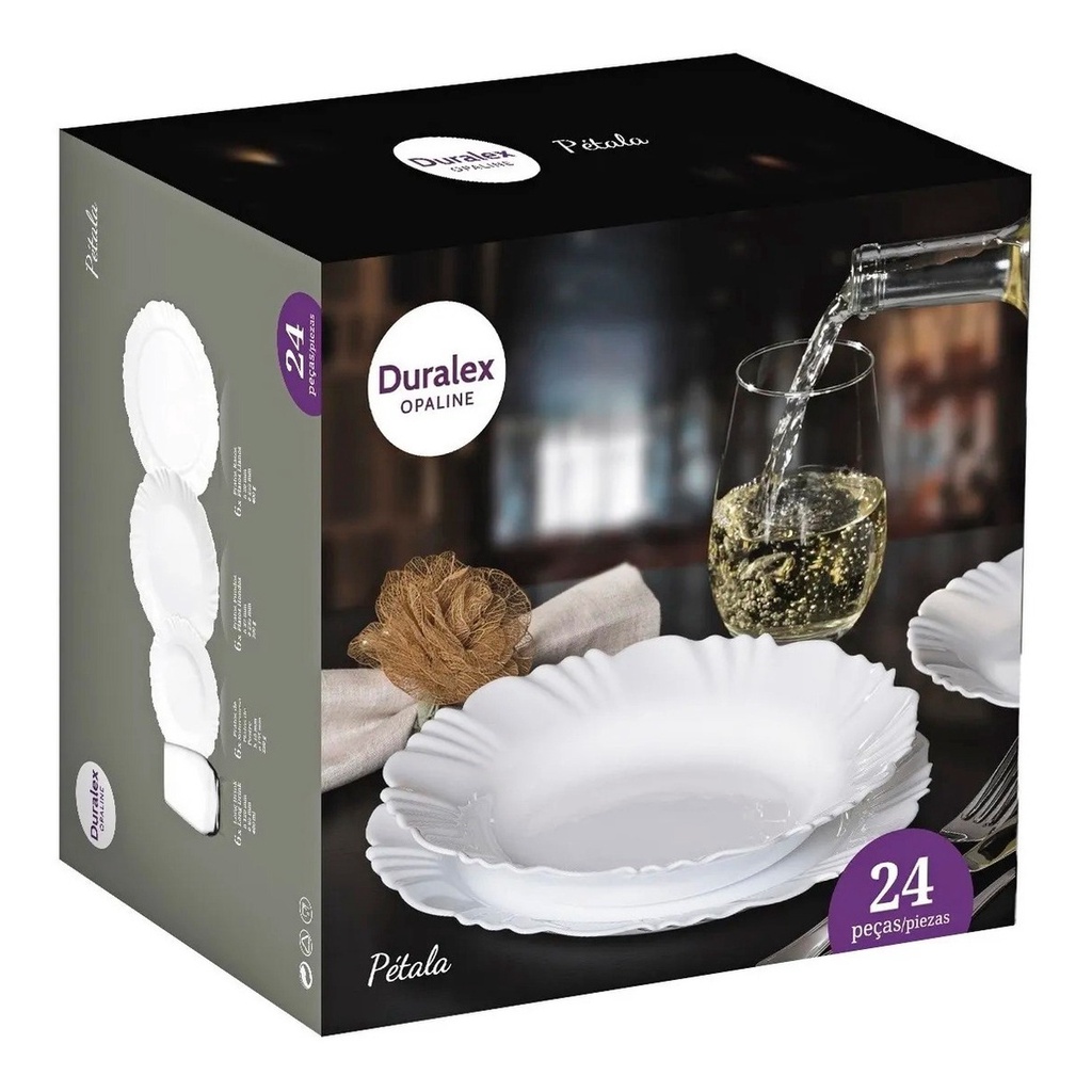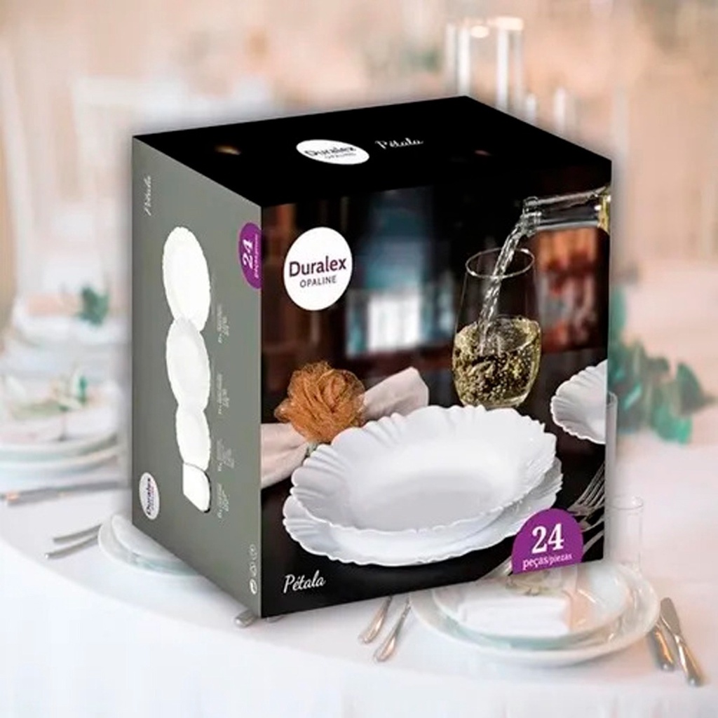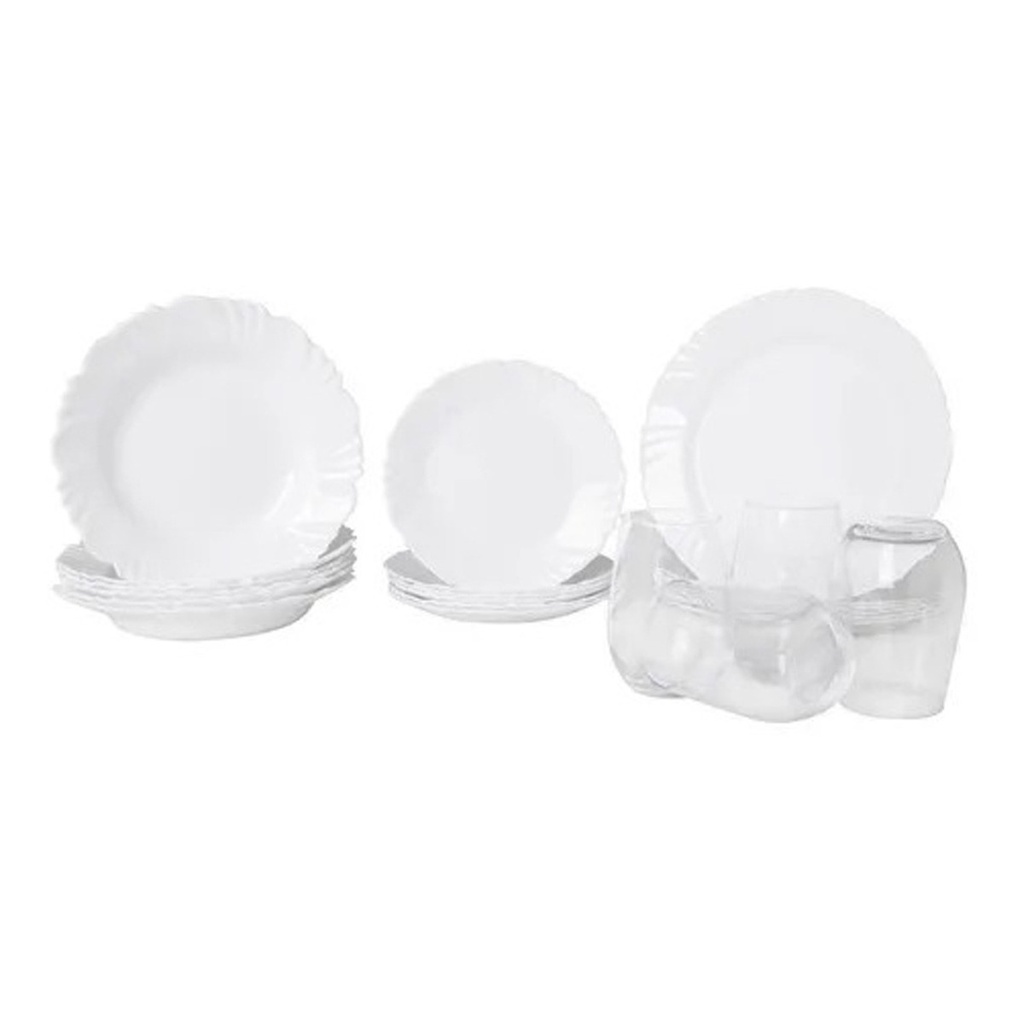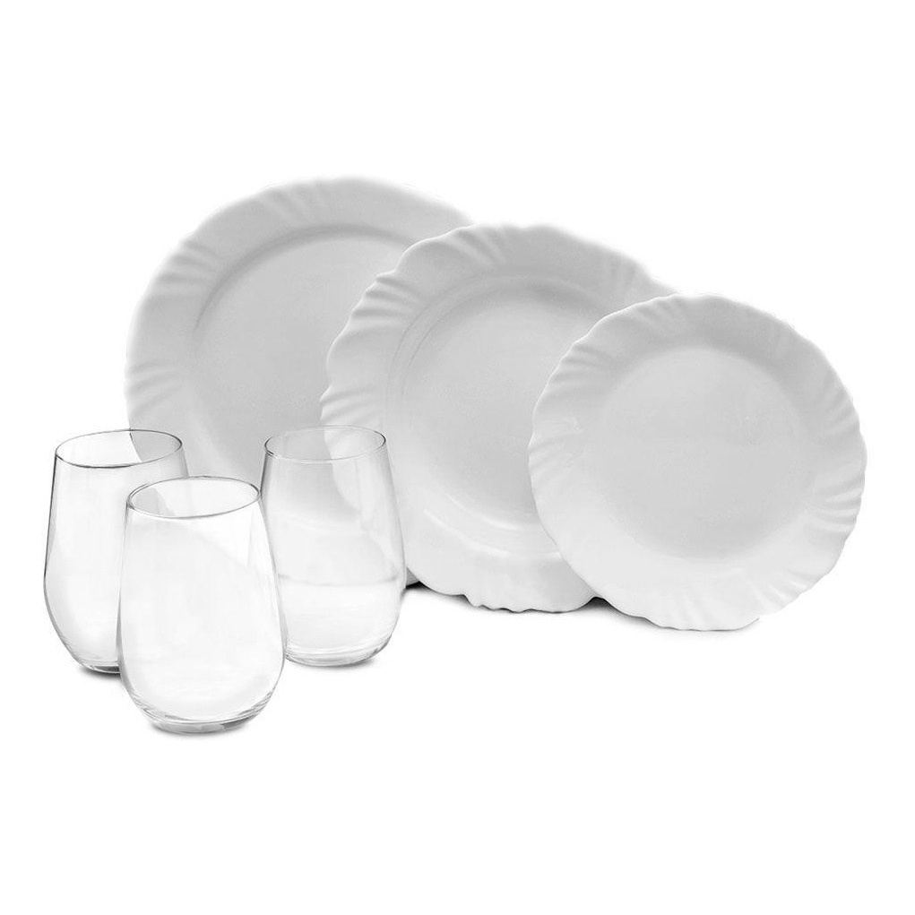 Aparelho De Jantar 24 Peças Branco Louça Pratos E Copos