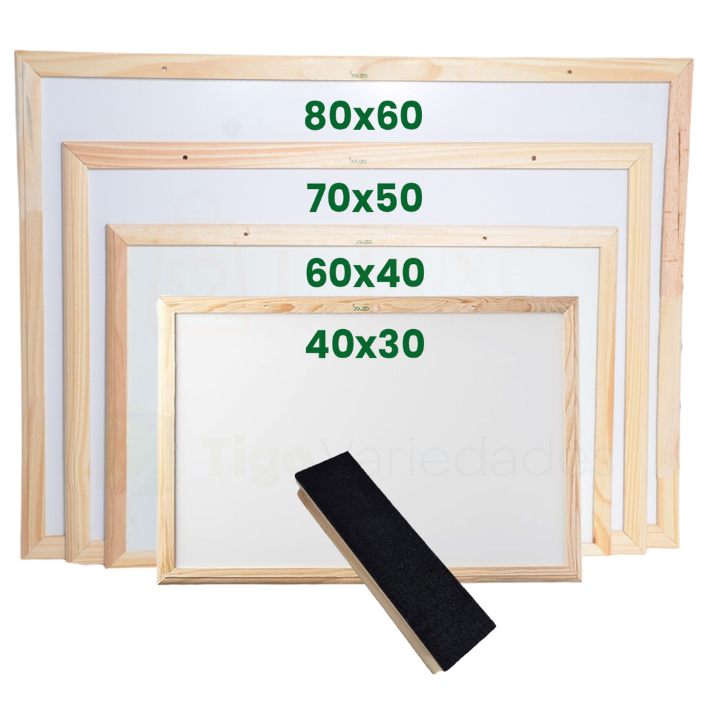 Quadro Lousa Branca Escolar Moldura em Madeira