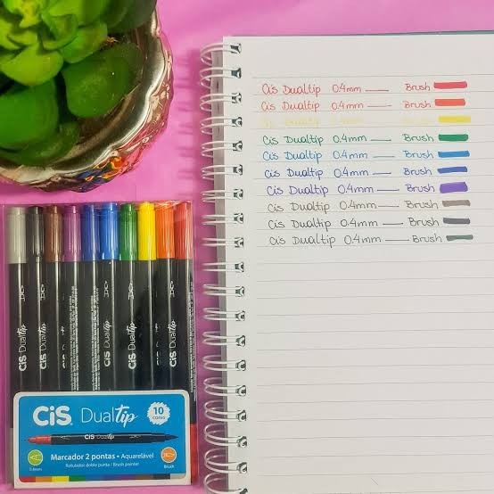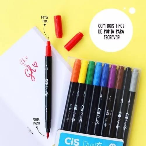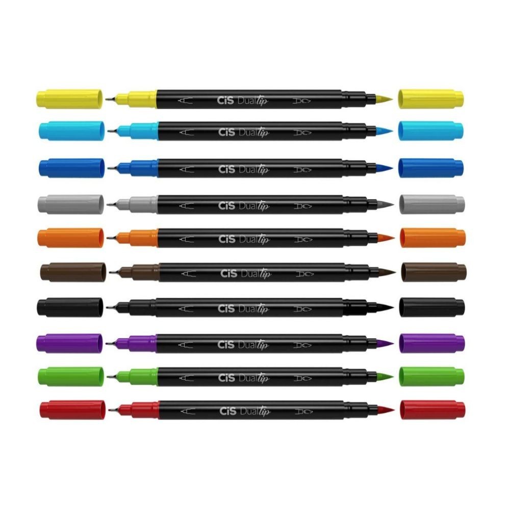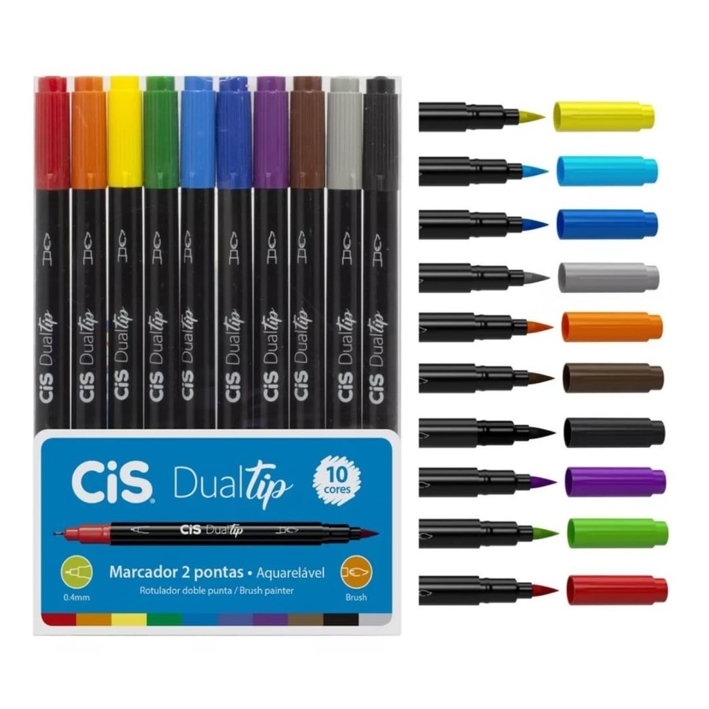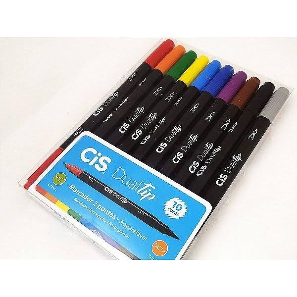 Conjunto de canetas Brush Cis Dualtip Marcador Artístico Aquarelável com 10 cores