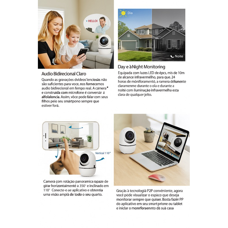 Babá Eletrônica Wi-Fi YOOSEE com Visão Noturna Infravermelha Câmera de Segurança Inteligente