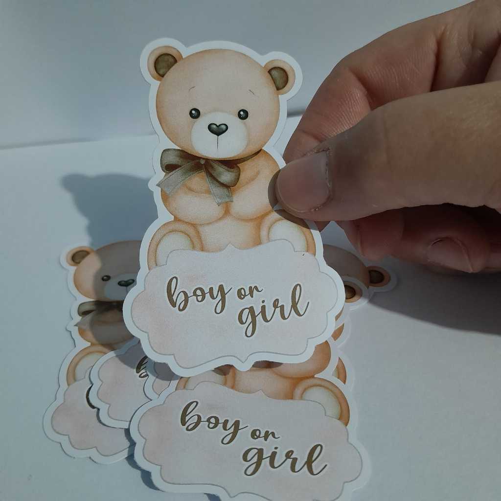 Apliques para Tubetes Chá Revelação - Ursinho Bege - Festa infantil - Lembrancinhas personalizadas