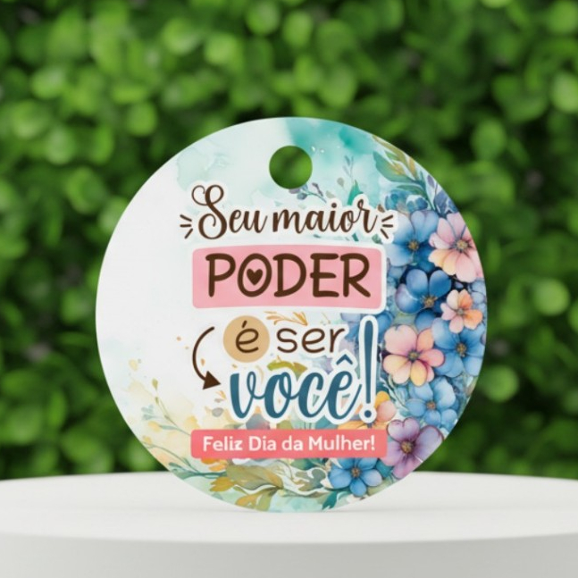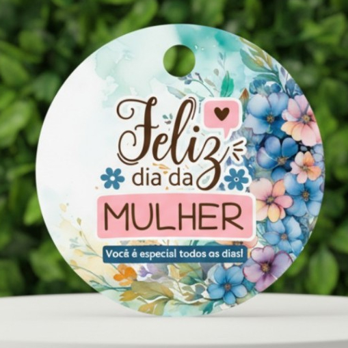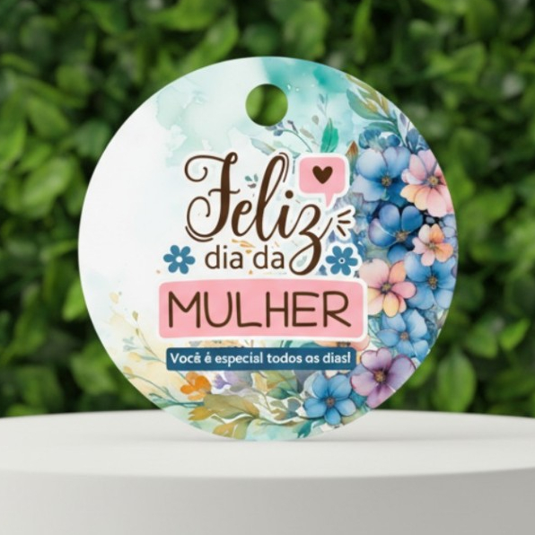Tag c/ furo para Dia das Mulheres Redonda 4cm / mimos, presentes e lembrancinhas de dia das mulheres