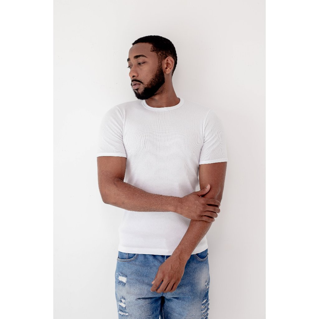 Kit 3 Camiseta Canelada Slim Justa ao Corpo Estilo Americano envio imediato.