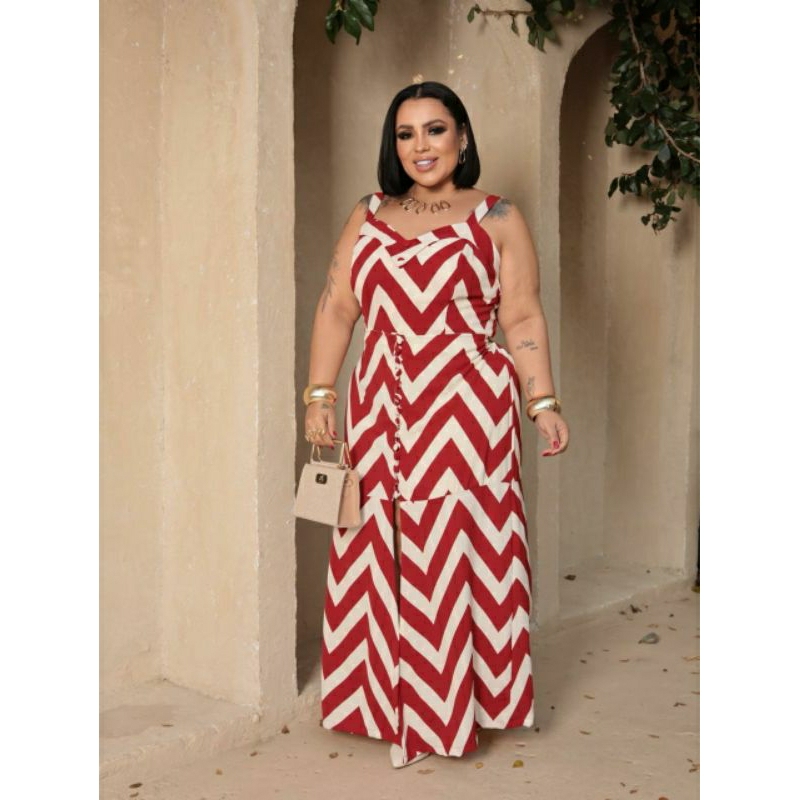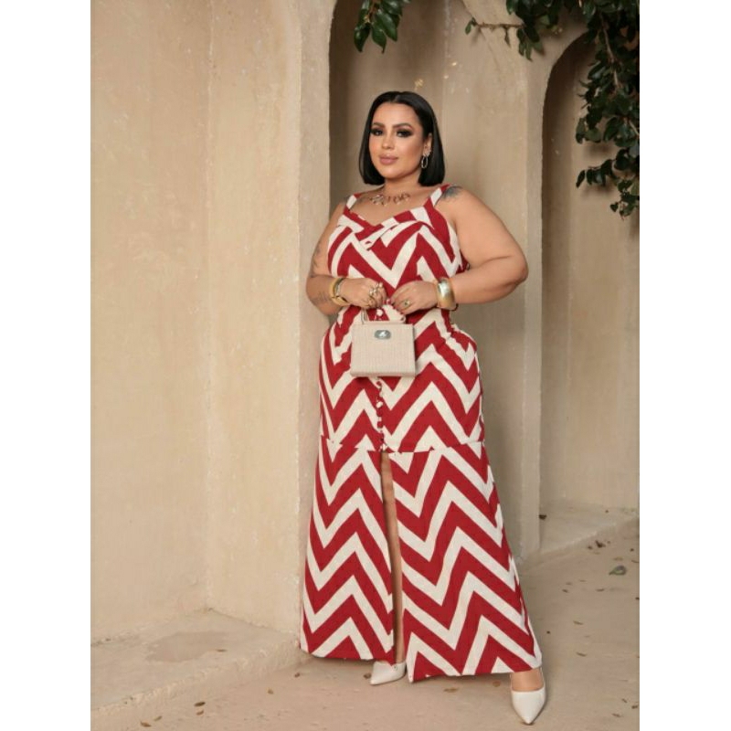 Conjunto feminino saia longa de botões com fenda frontal e cropped plus size