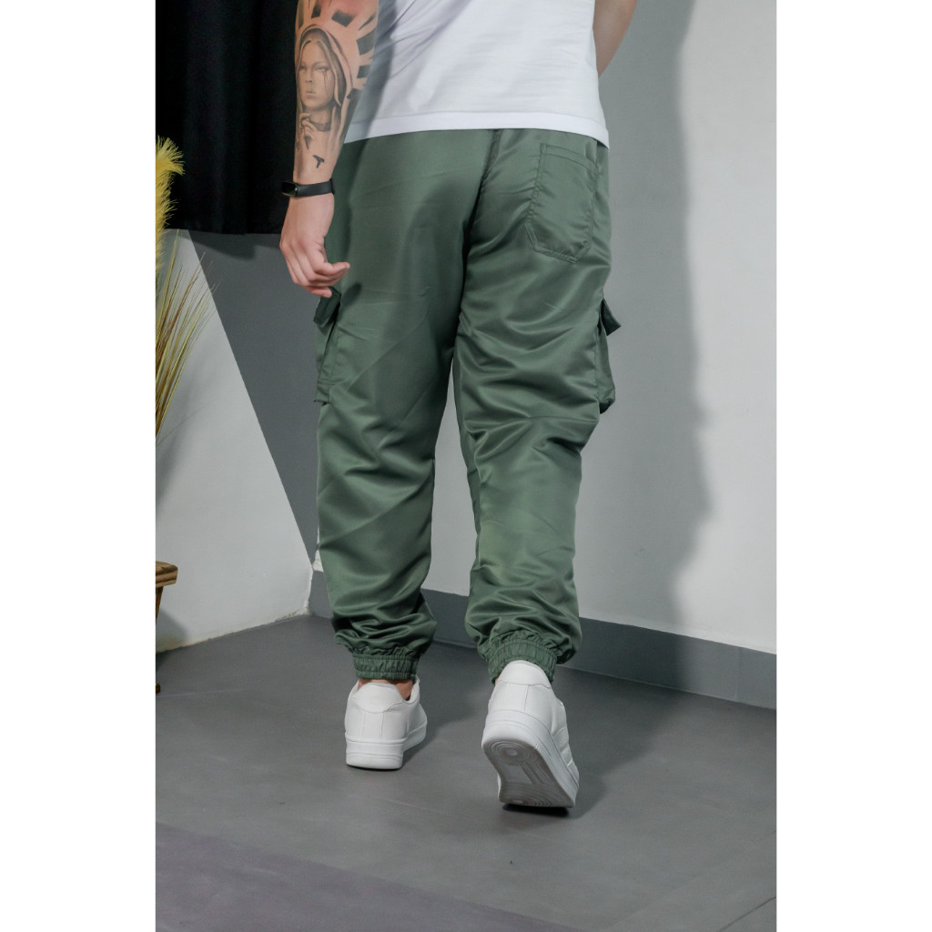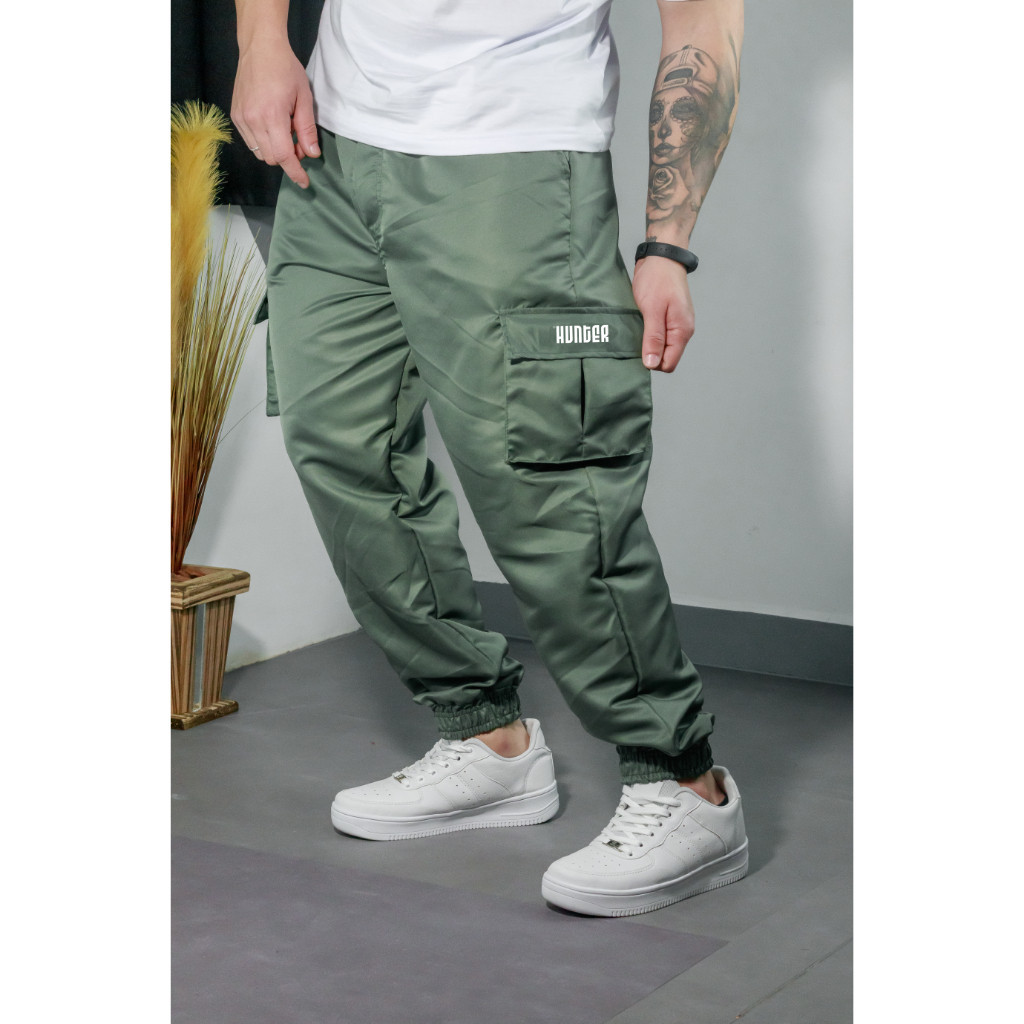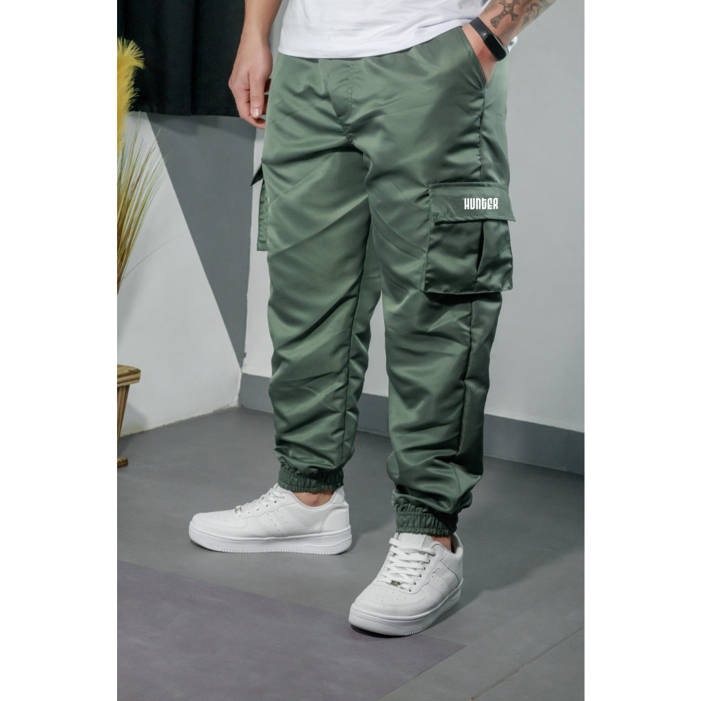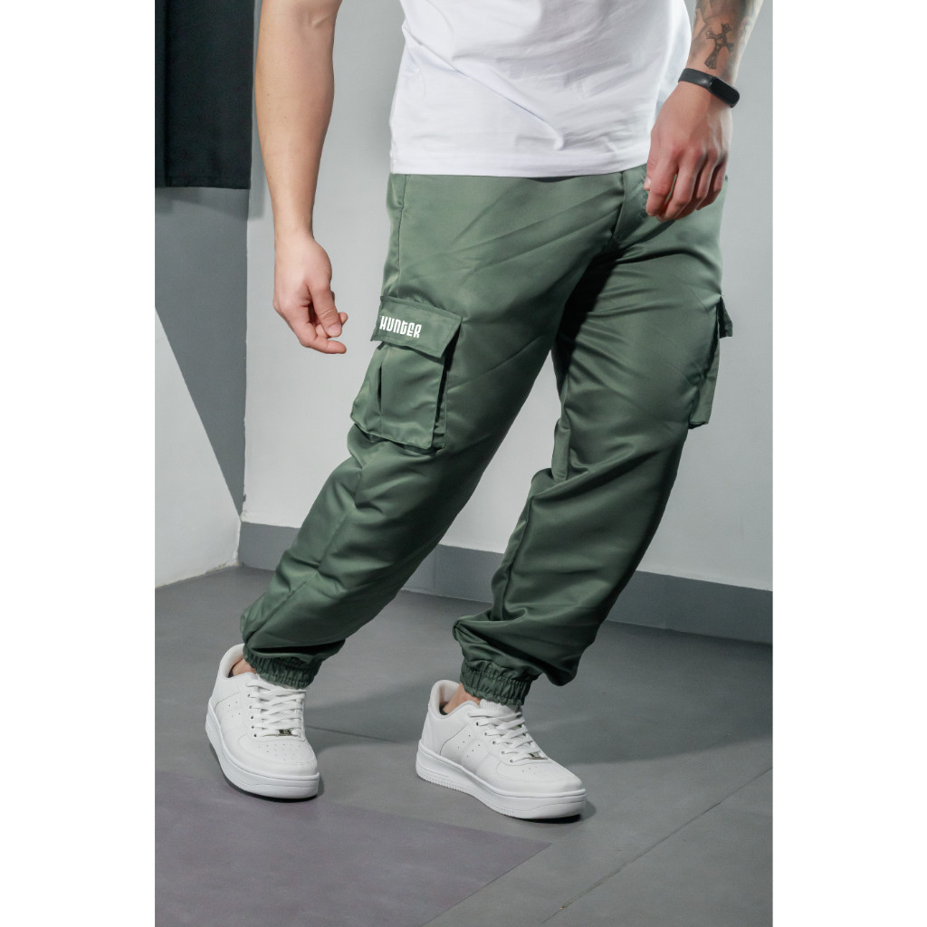 Calça Jogger Cargo Corta Vento Combat Masculina Verde Skate