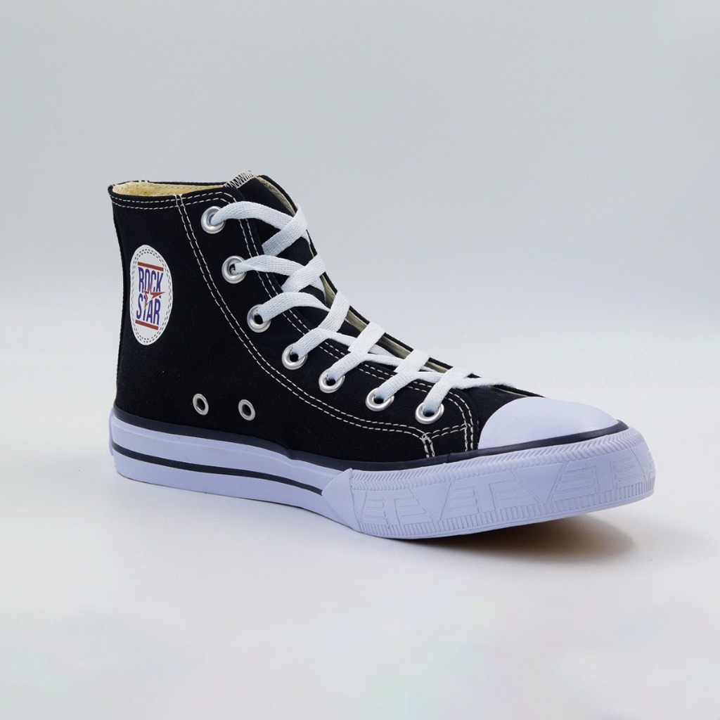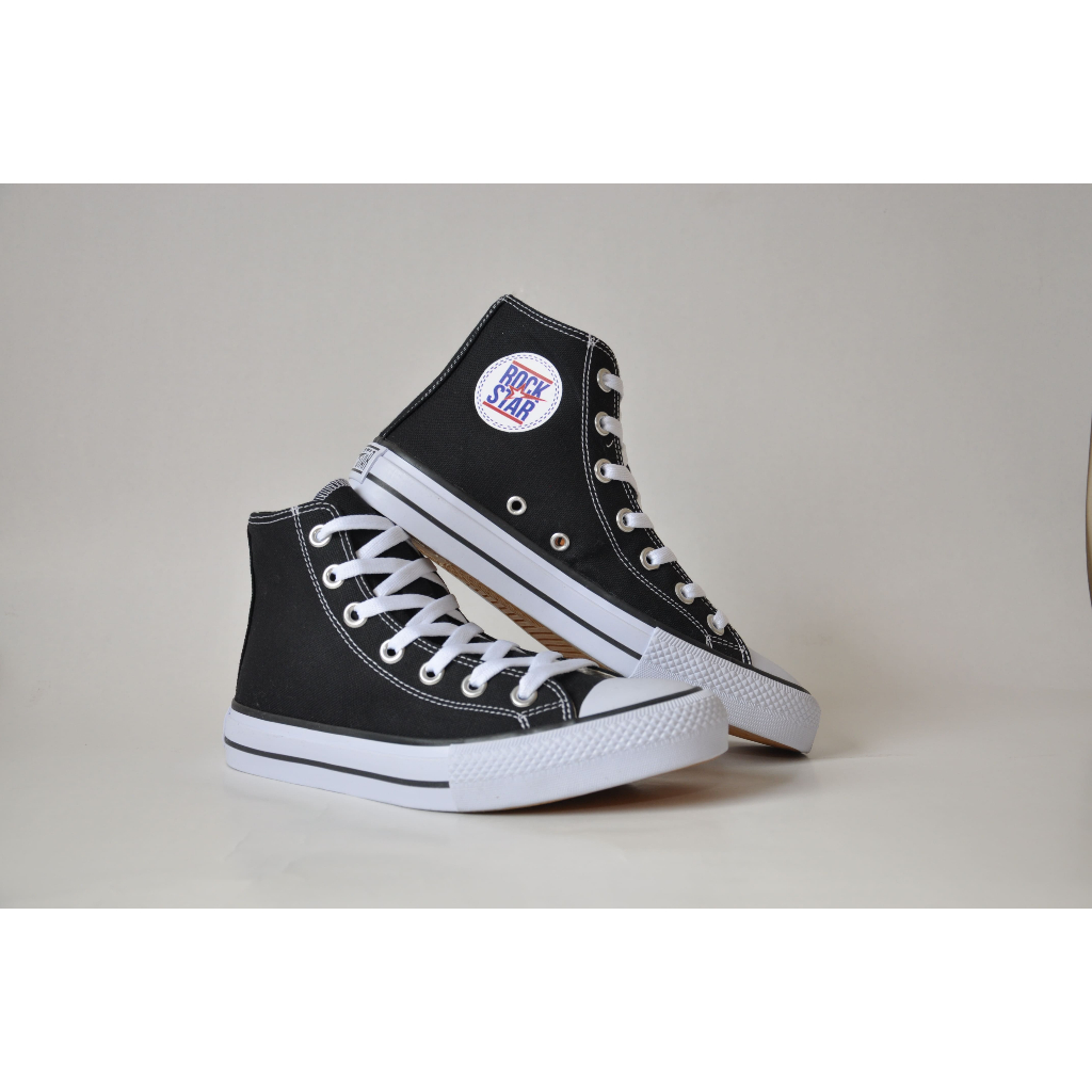 Tênis Feminino E Masculino Preto Cano Alto Rock Star Tradicional Tecido Premium Confortável