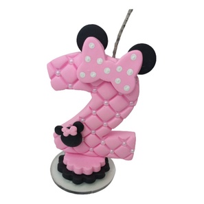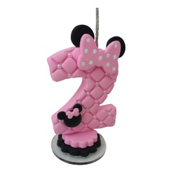 Vela Personagem Minnie Rosa 2 Anos Bolo Aniversário Laço Bolinha
