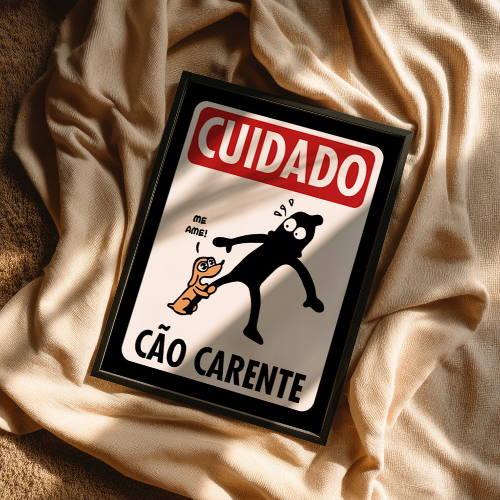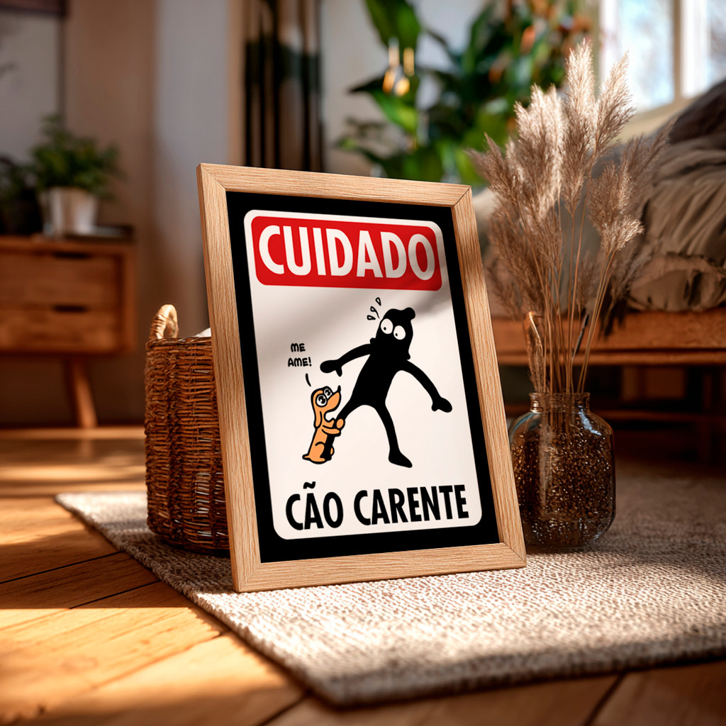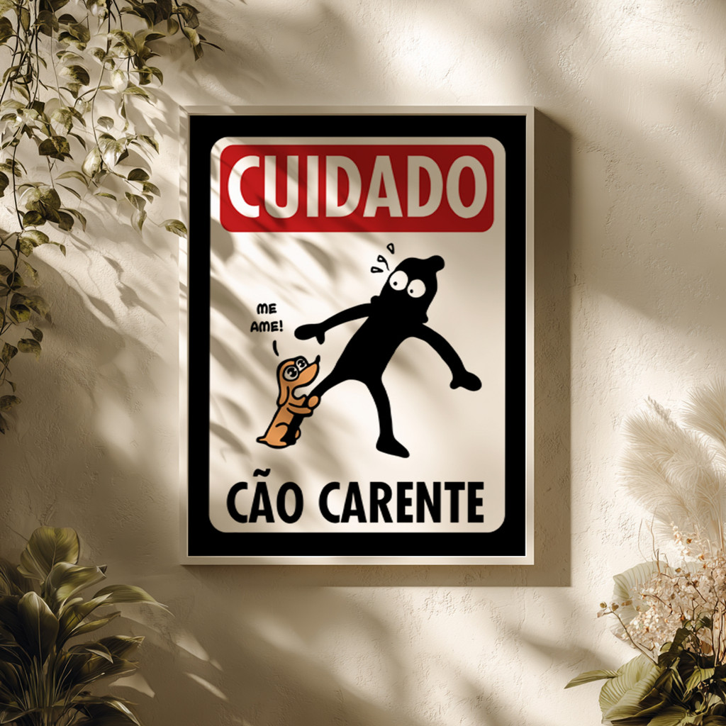 Quadro Placa Divertida Cuidado Cão Carente Humor Criativo Pet Decoração Parede Divertida