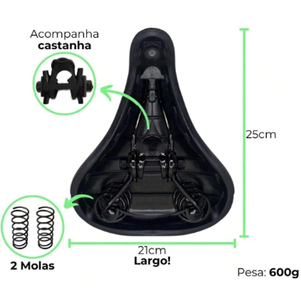 Banco Selim LARGO Com 2 Molas Largo Bike Bicicleta Confortável