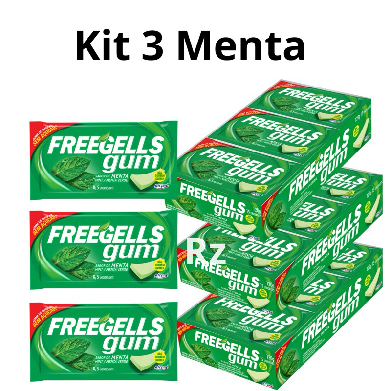 Chiclete Freegells Gum 15uni tipo Trident - Zero Açúcar e Sem Glúten