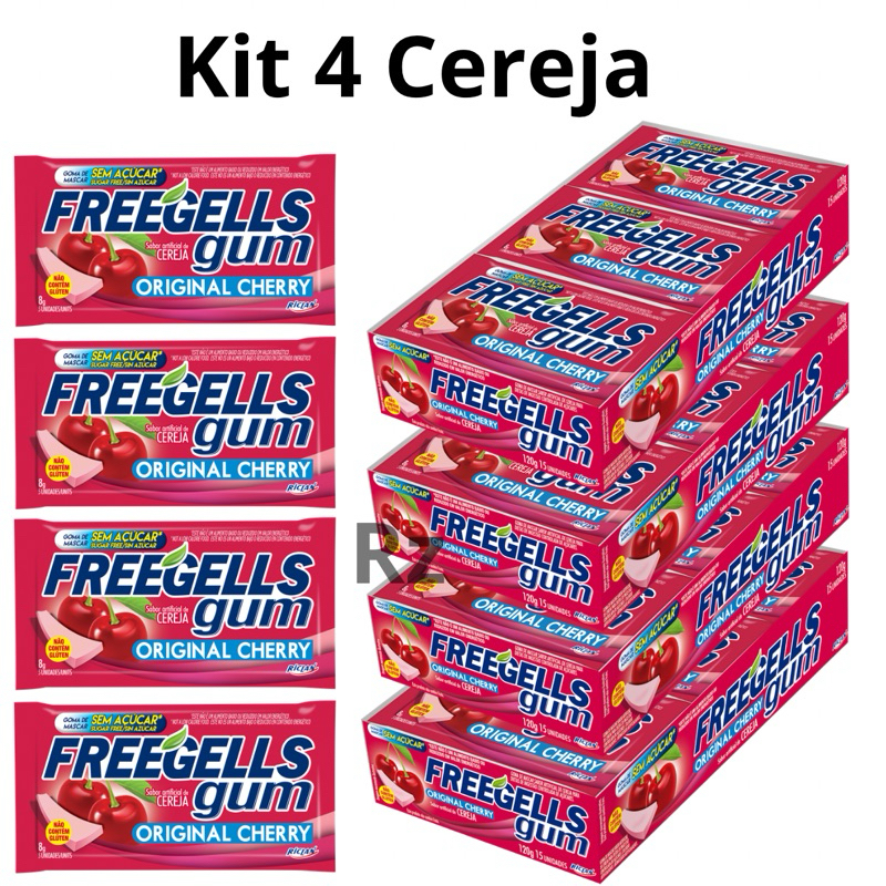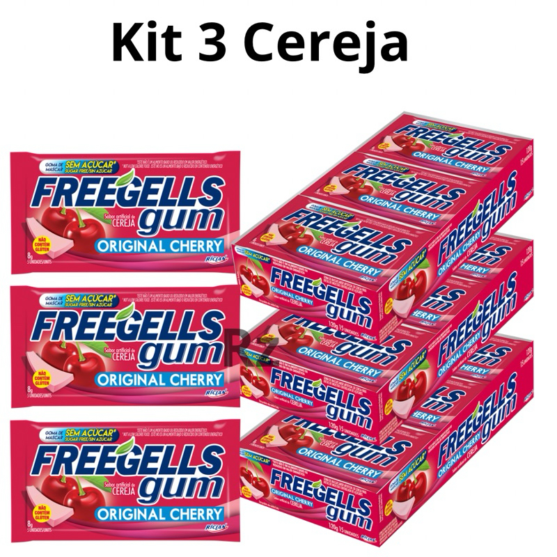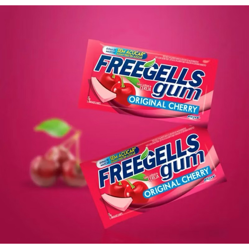 Chiclete Freegells Gum Cereja caixa com 15uni - Zero Açúcar Sem Glúten