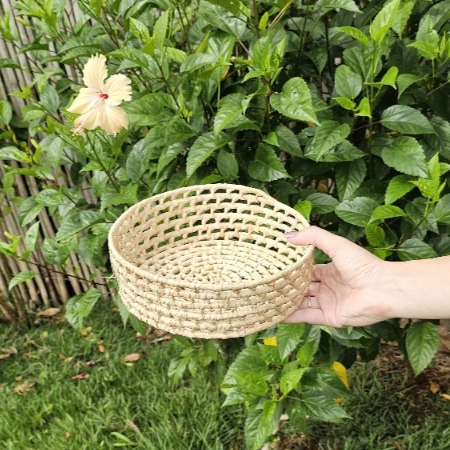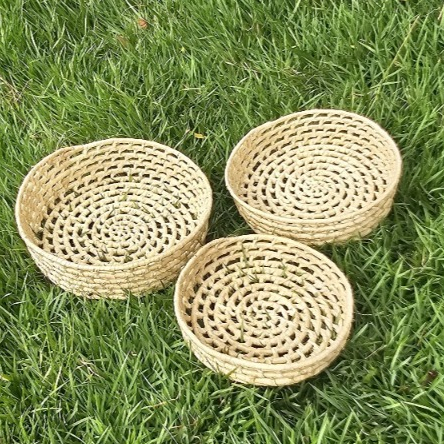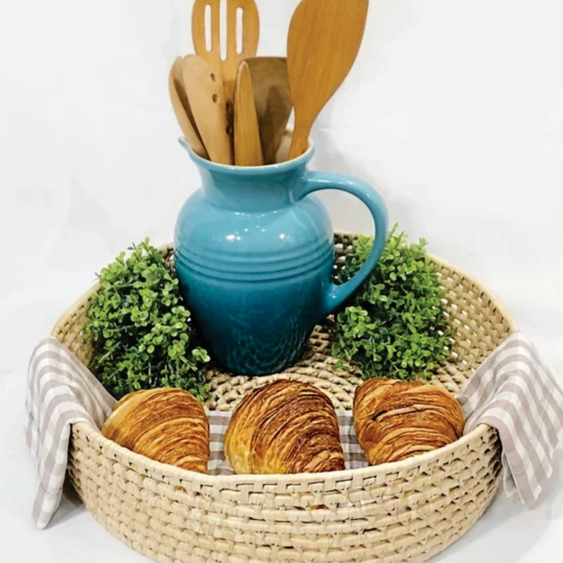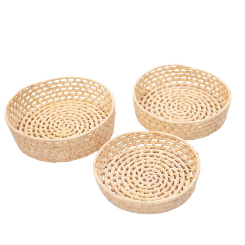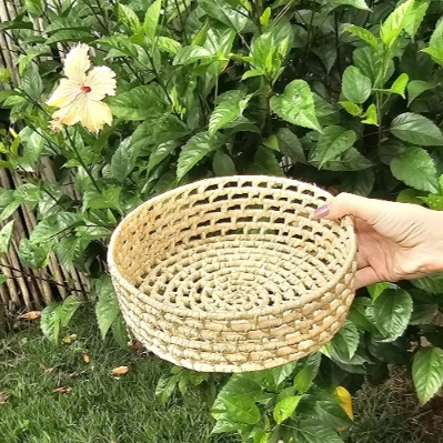 Jogo Bandeja Artesanal em Palha Carnaúba Pãozeira Redonda Cesto de Palha