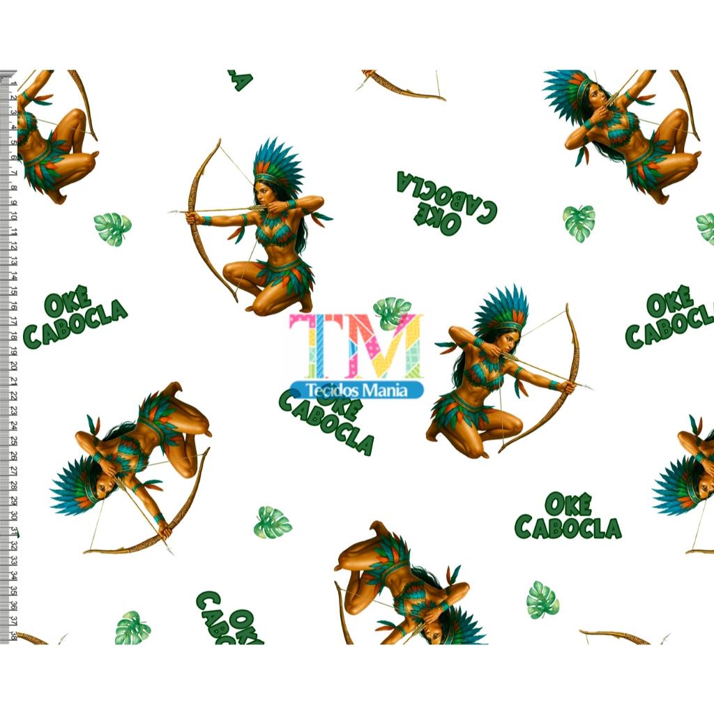 Tecido OXFORD estampado digital - Oxóssi - Oke Arô - Caboclo - Cabocla