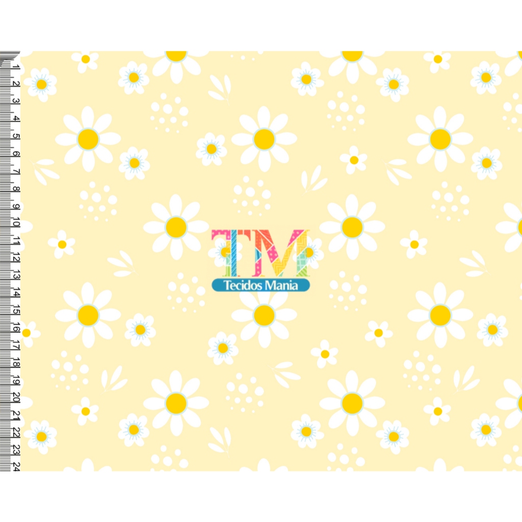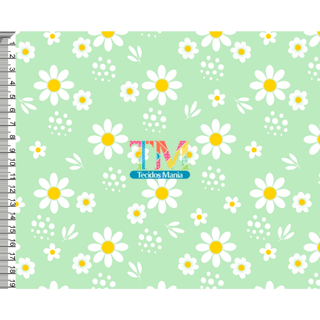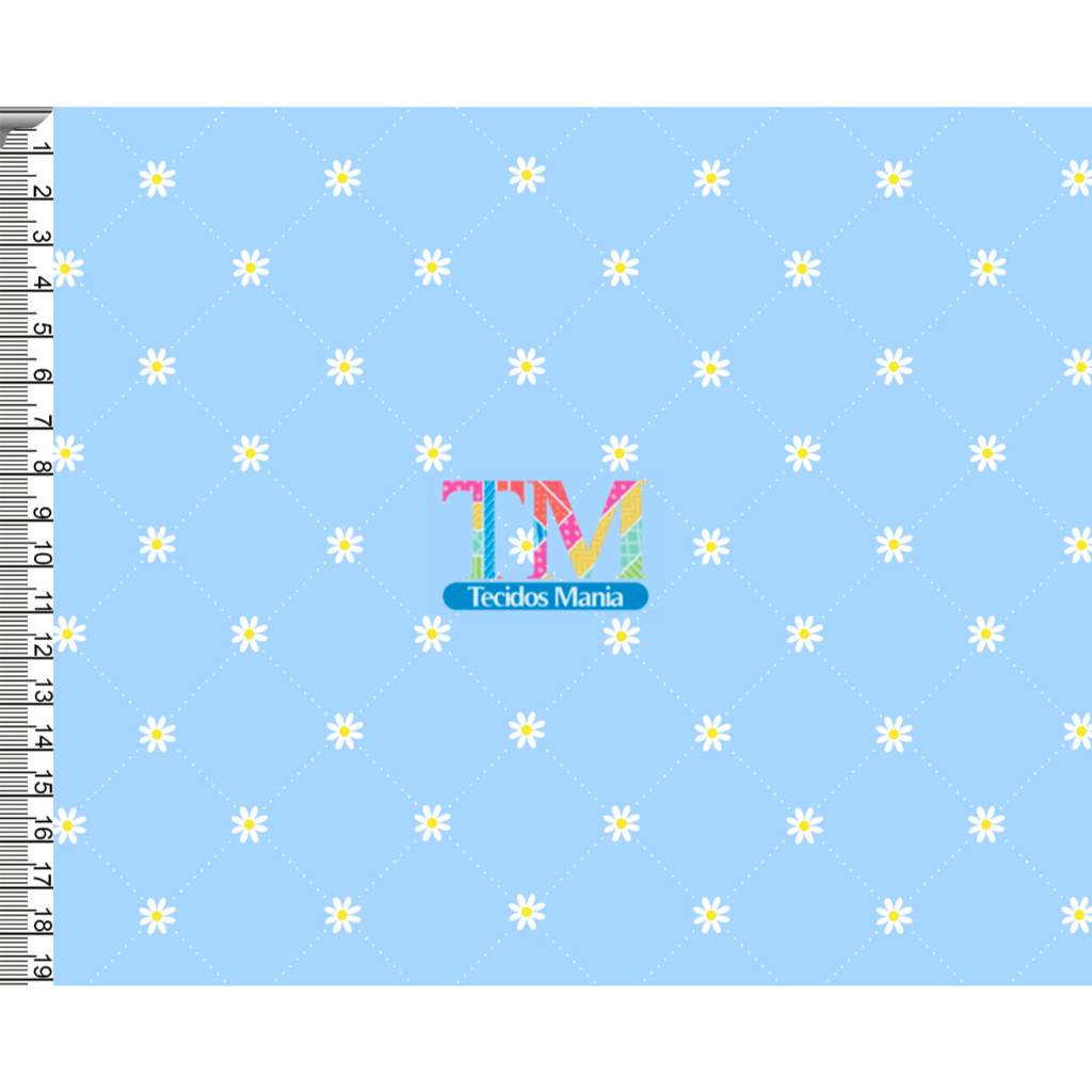 Tecido OXFORD estampado digital - Margaridas Brancas