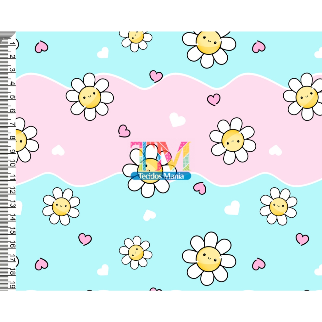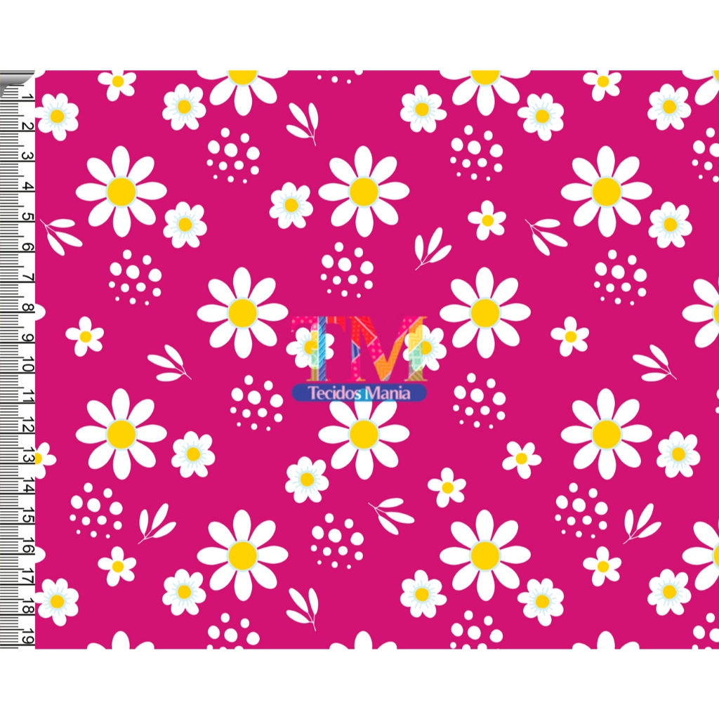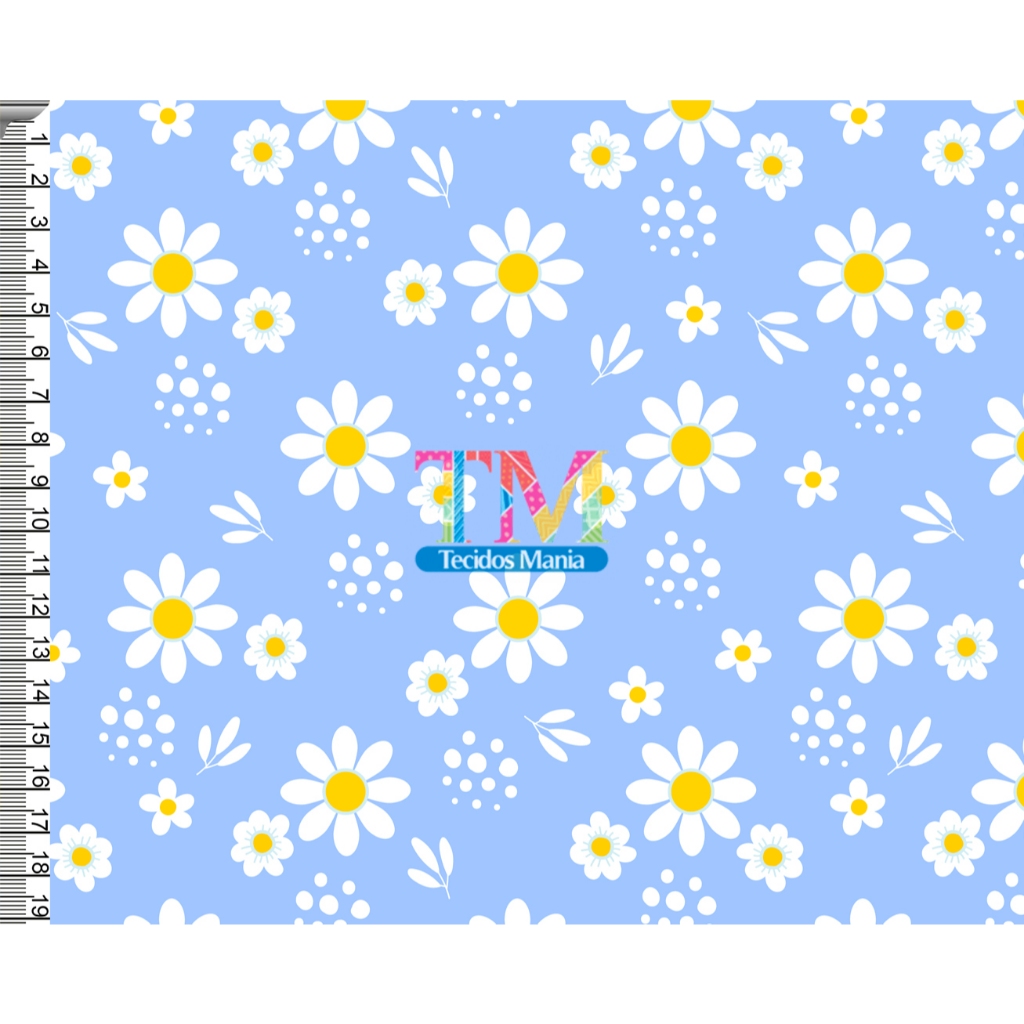 Tecido OXFORD estampado digital - Margaridas Brancas