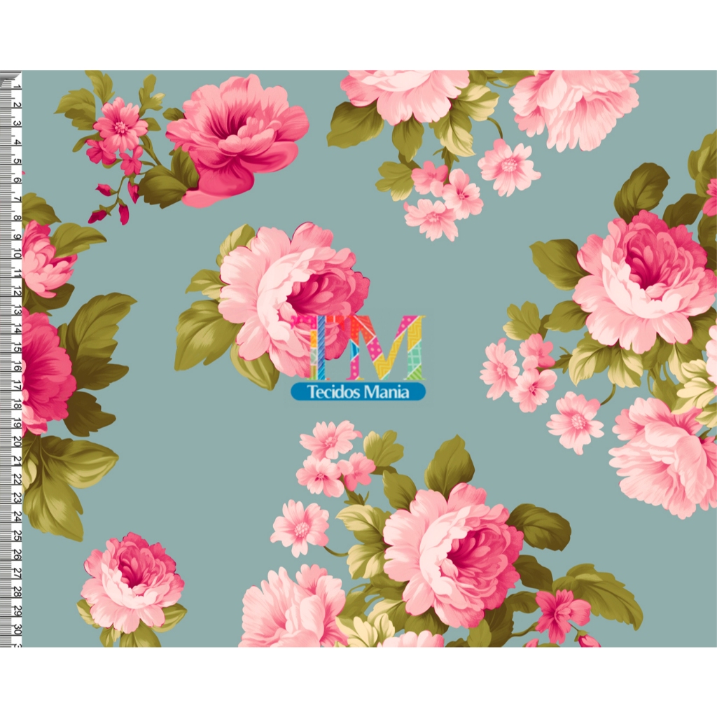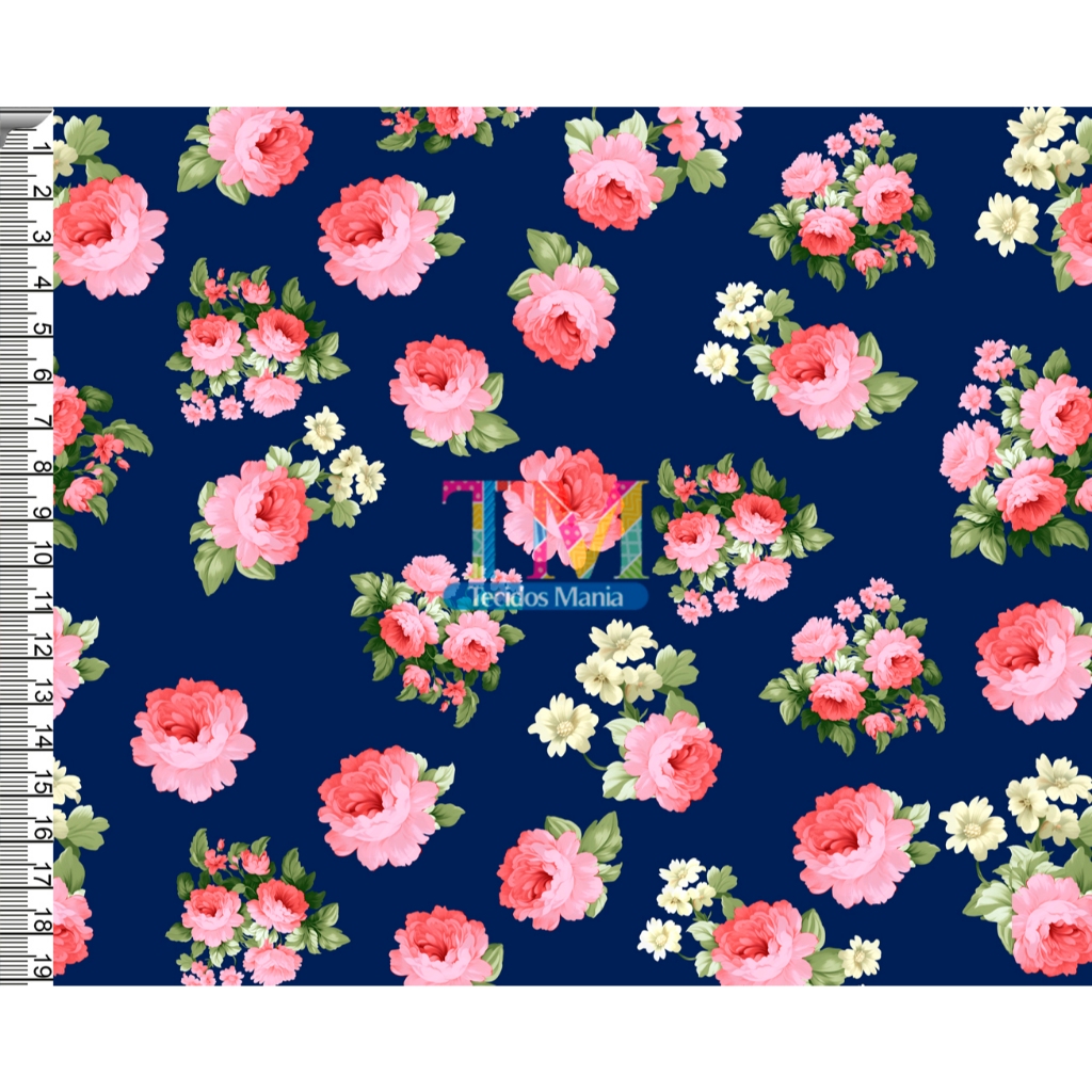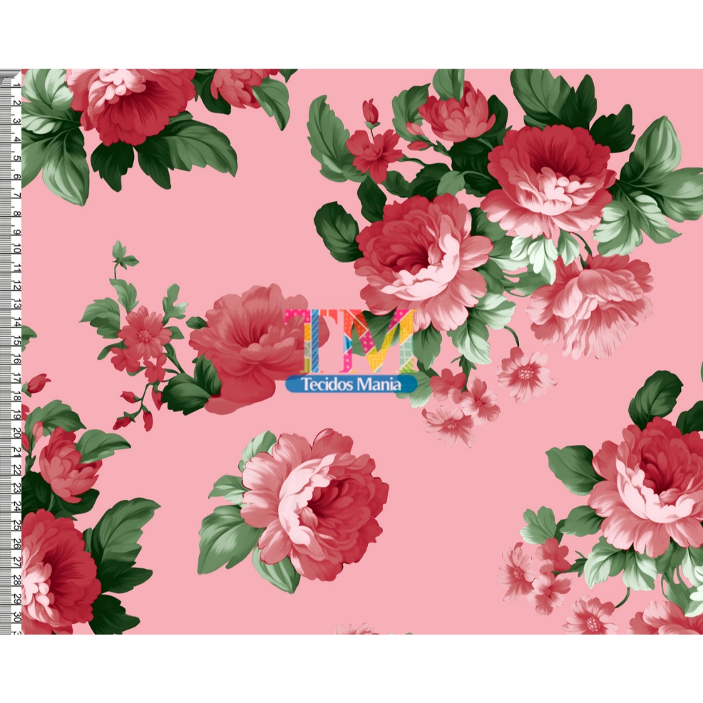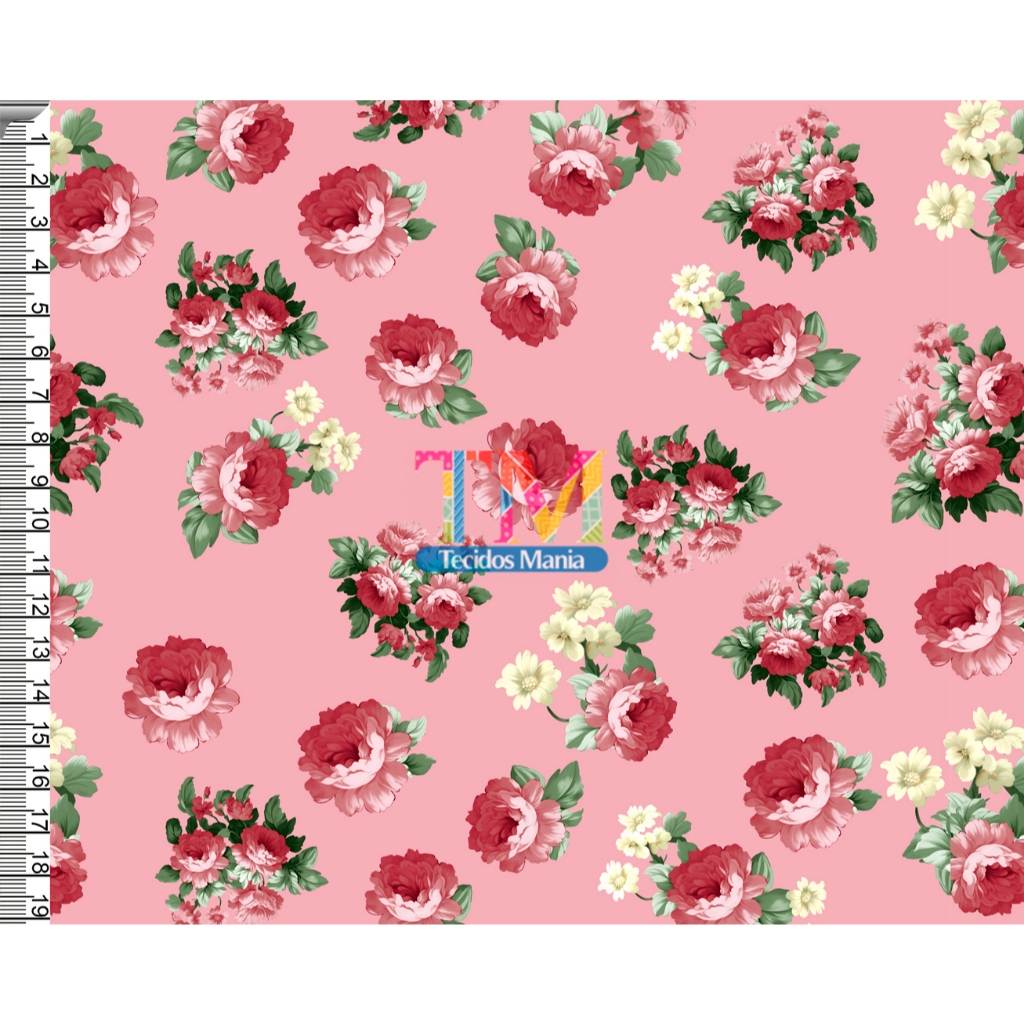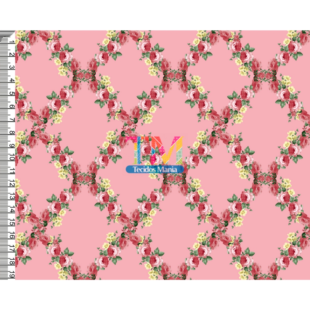 Tecido OXFORD estampado digital - Floral Rosas - Verona