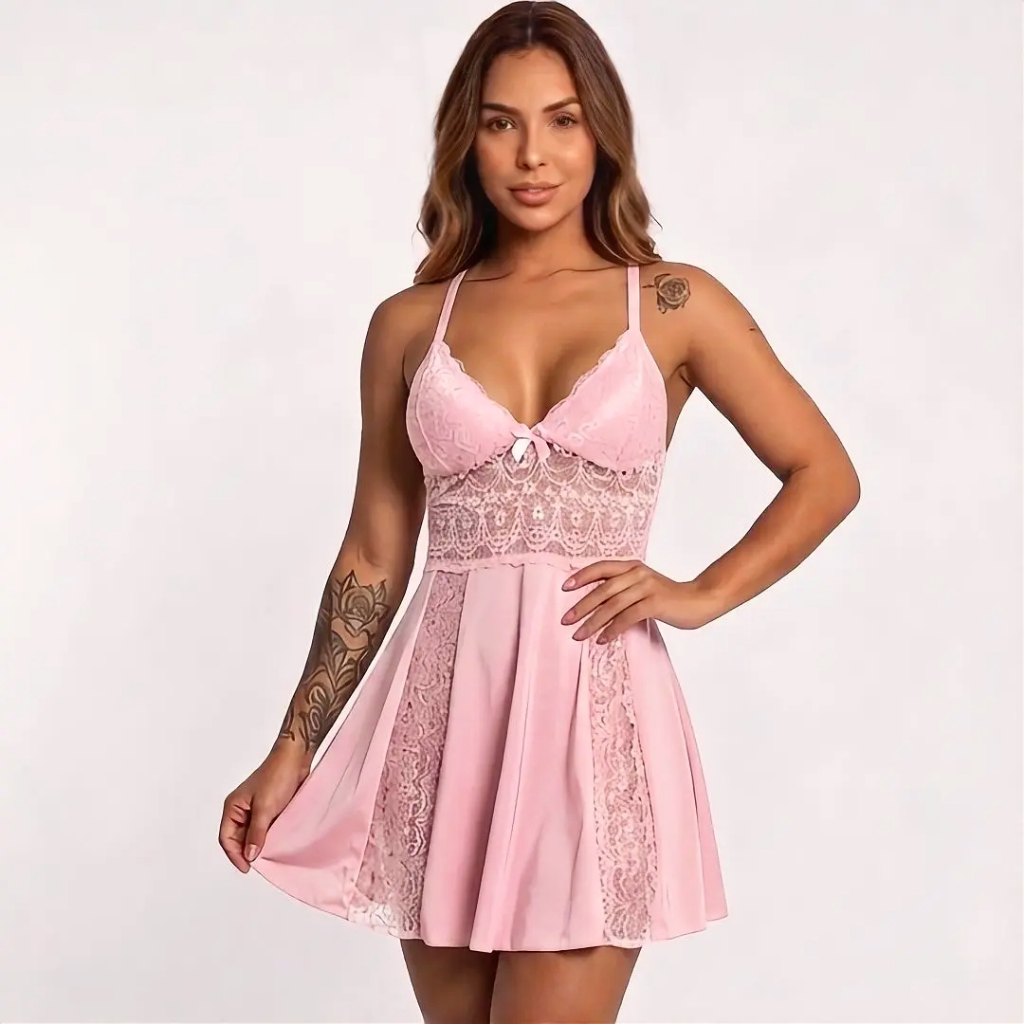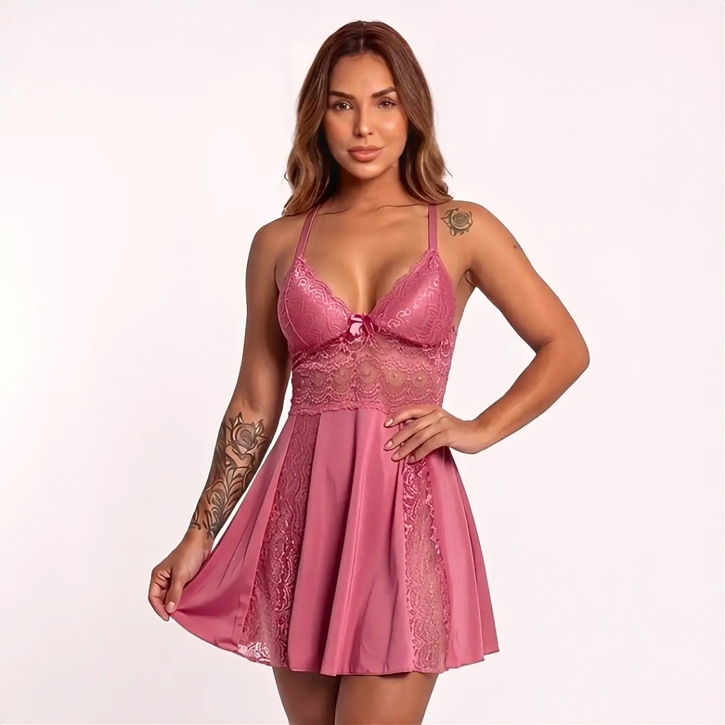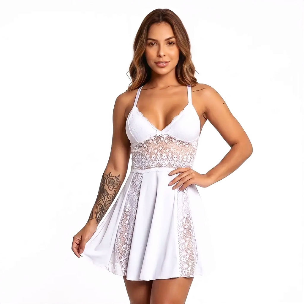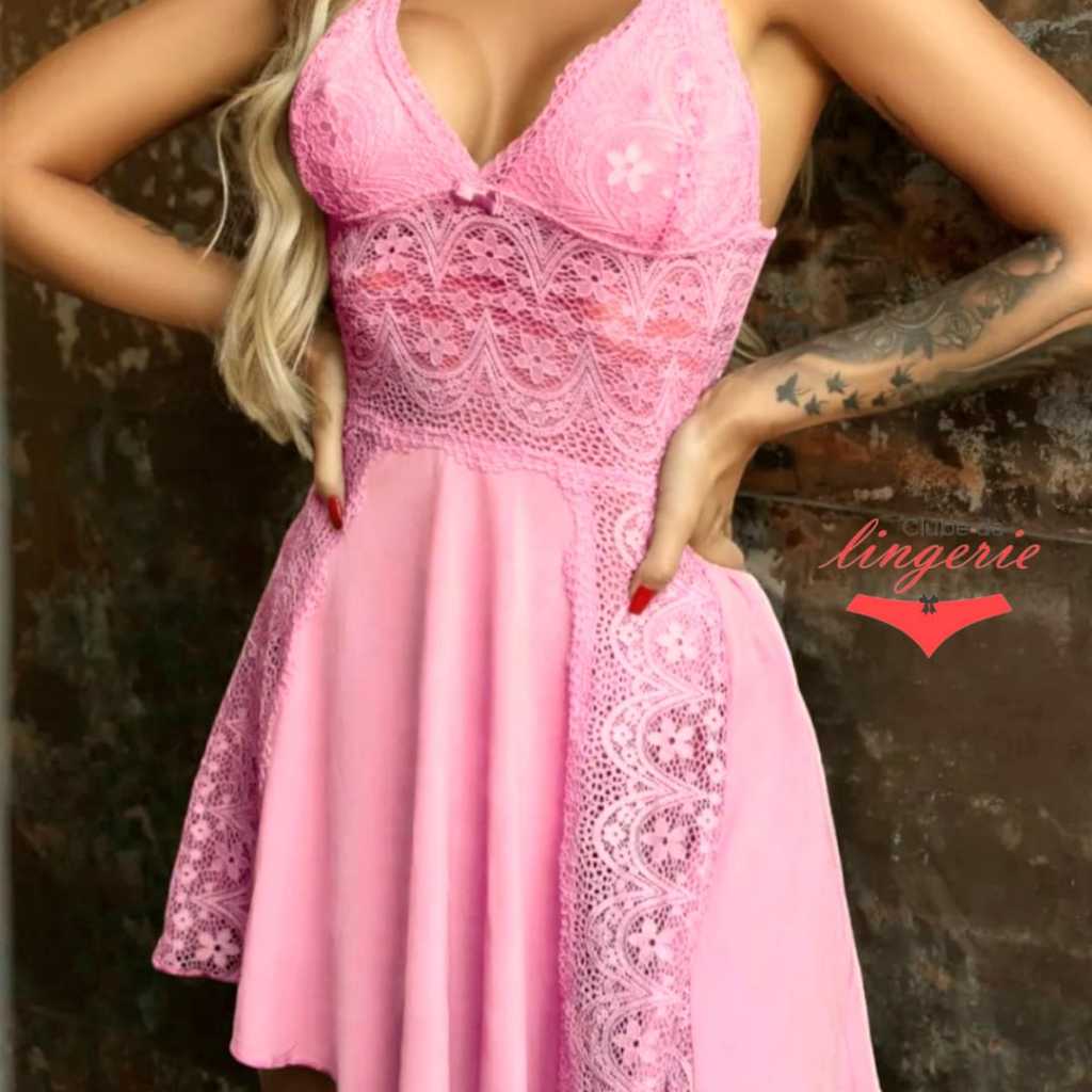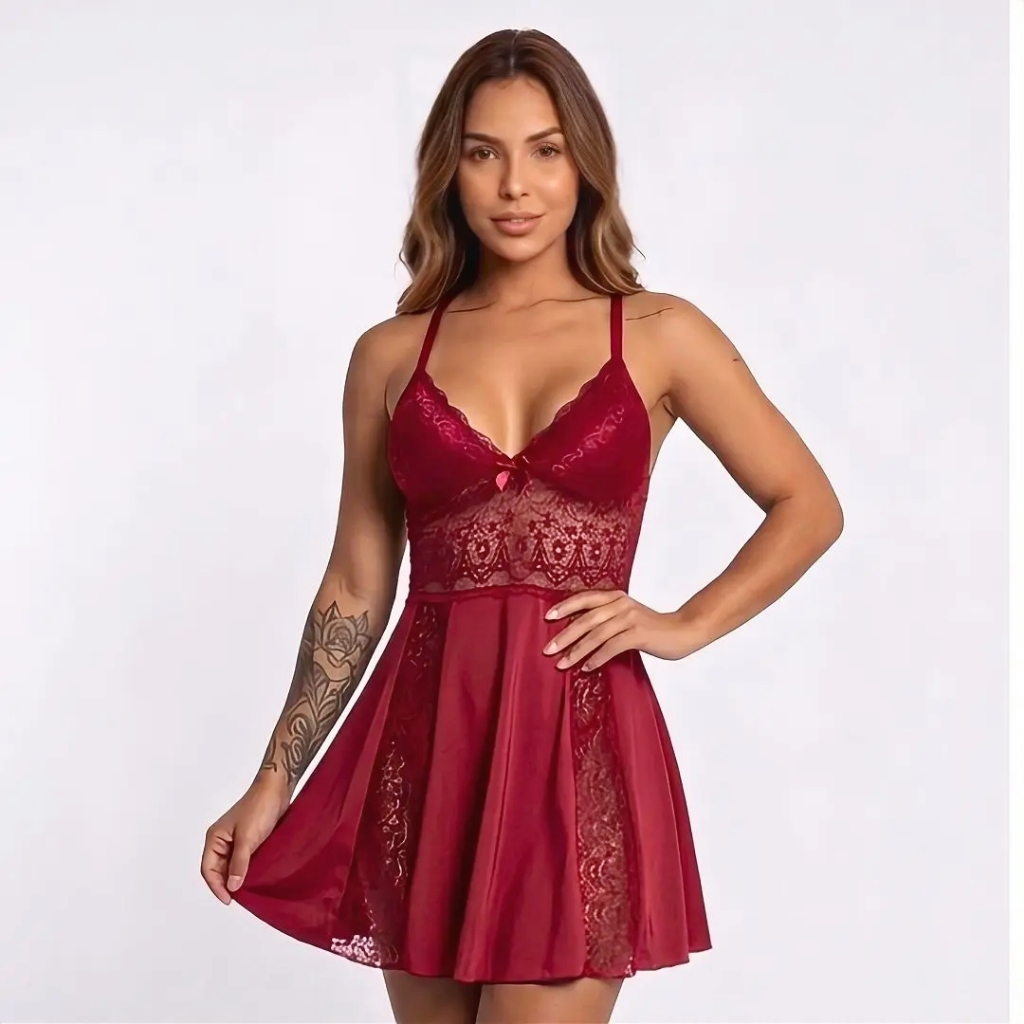 Camisola Sexy Feminina P ao 54 Renda Microfibra Sem Bojo Sensual Cruzado Nas Costas Ref Bonita