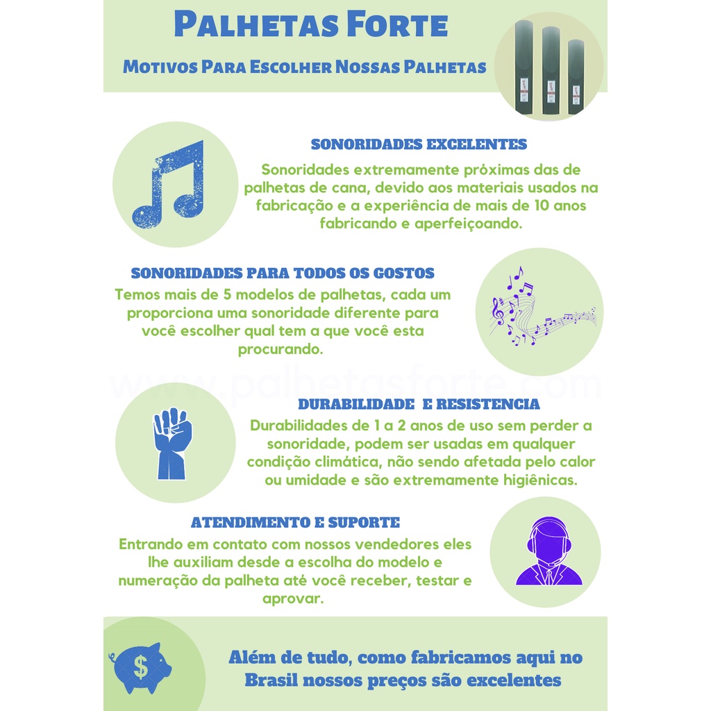 Palheta Forte Para Sax Alto ( Durabilidade de 2 anos )