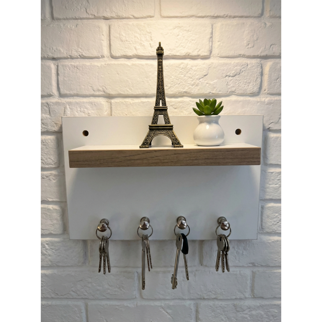 Porta Chaves para Parede – MDF 15mm | Branco TX, Cinza Itália e + Modelo ,Torre Eiffel