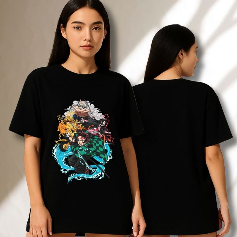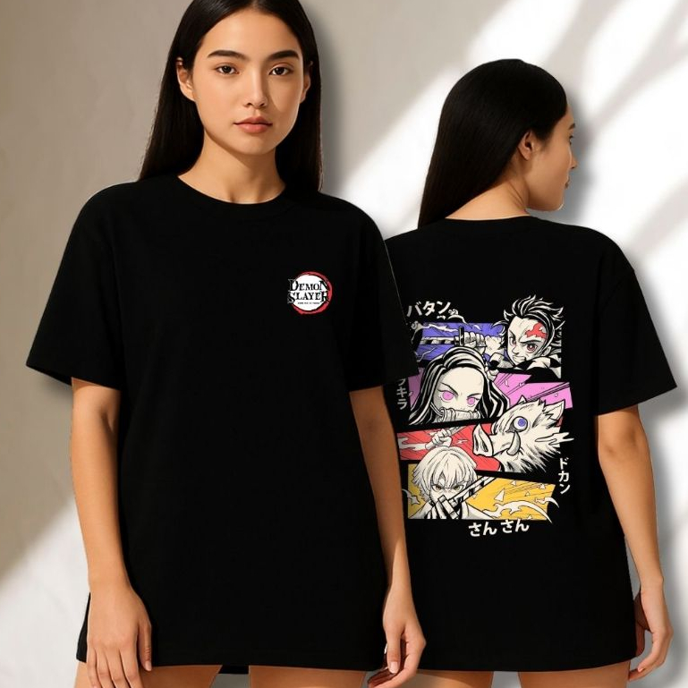 Camiseta Oversized - DEMON SLAYER - Kimetsu NoYaiba - tanjiro / nezuko / inosuke / zenitsu / uzui / akaza / castelo infi