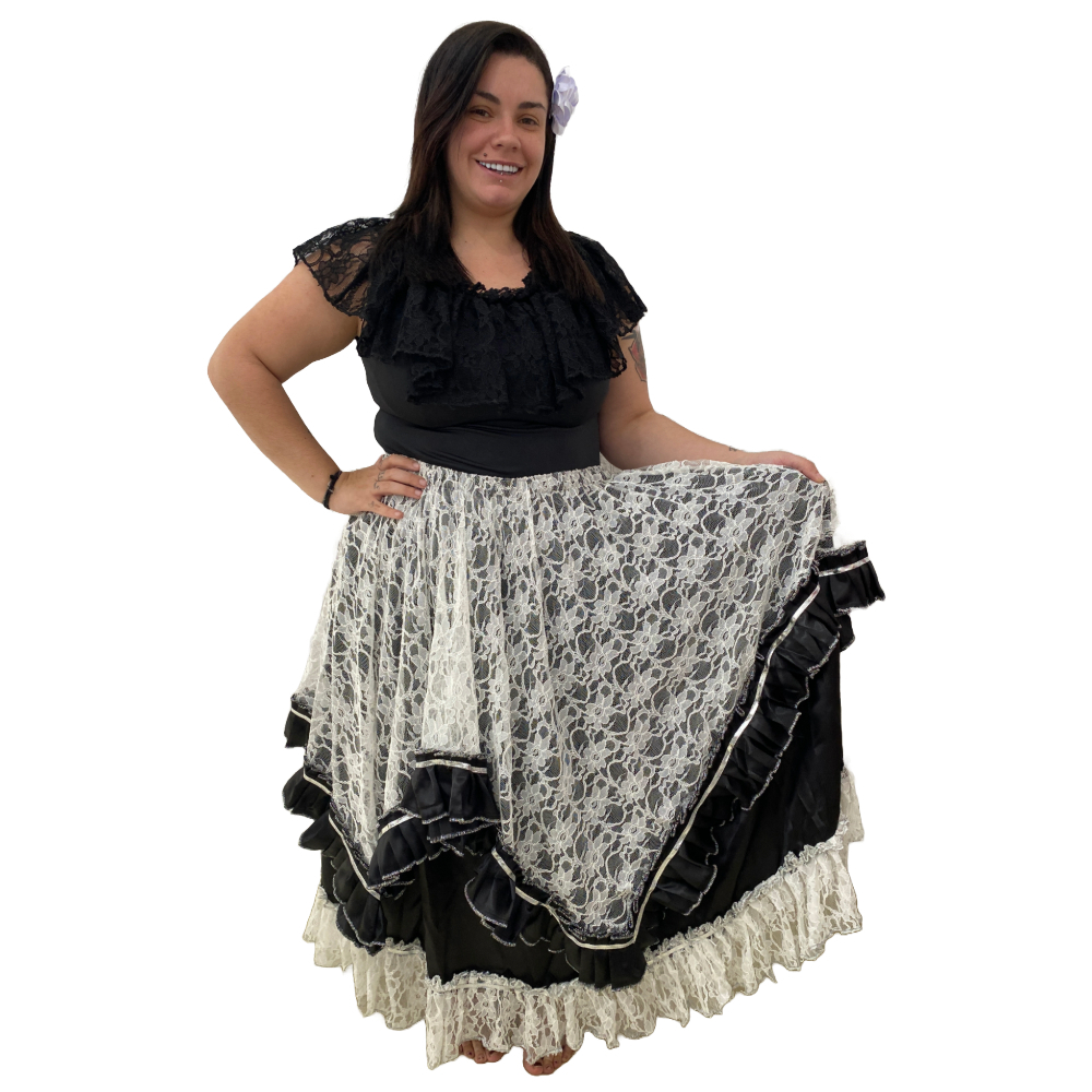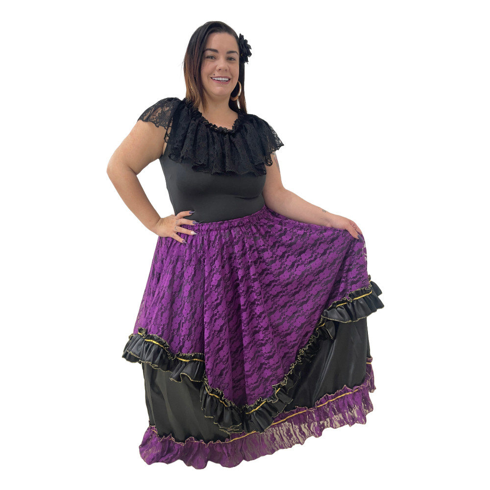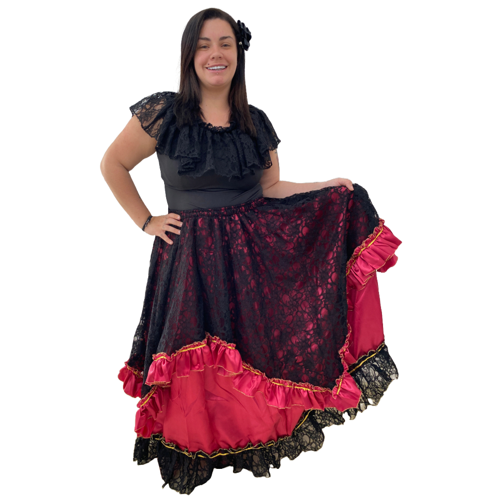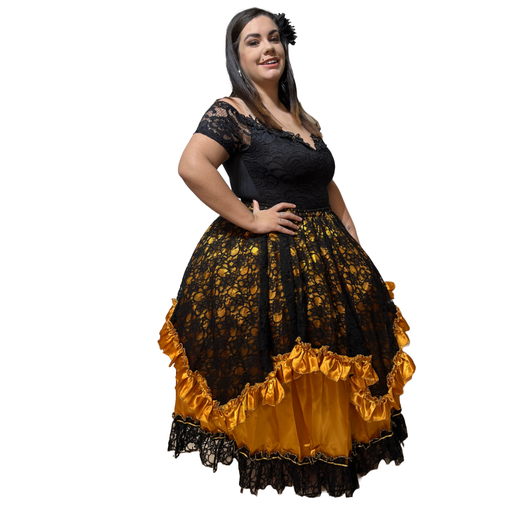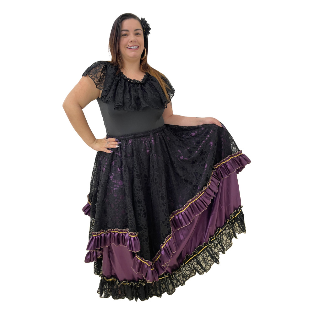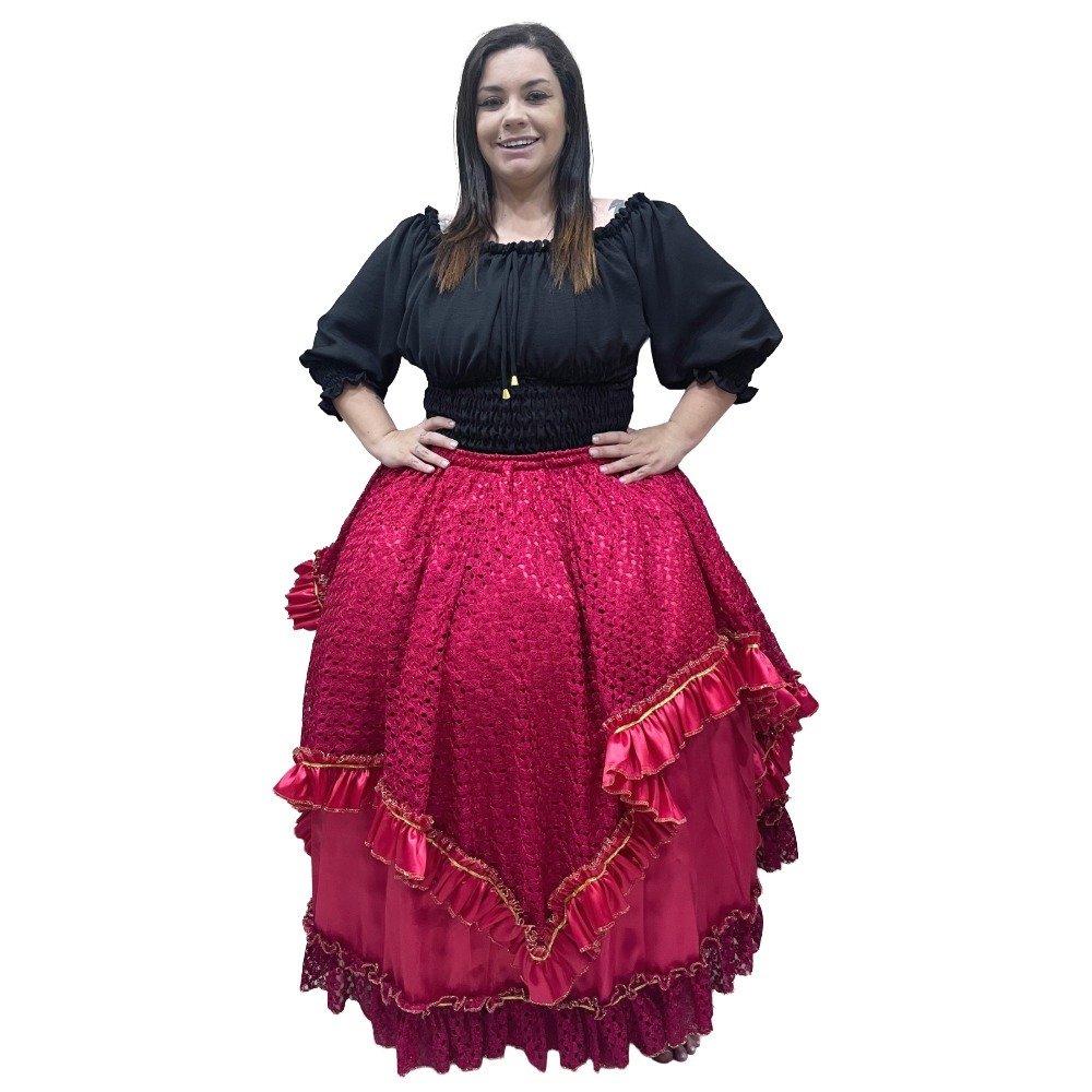 Saia Cigana 3m Rodada Cetim E Renda Pomba Gira Umbanda Candomblé