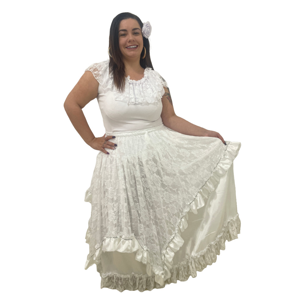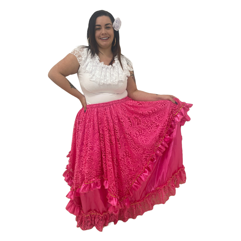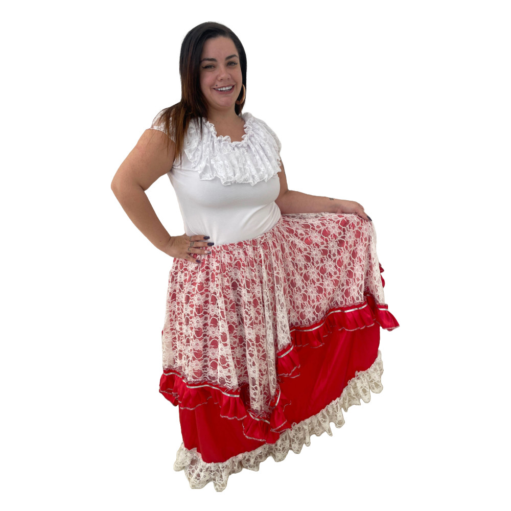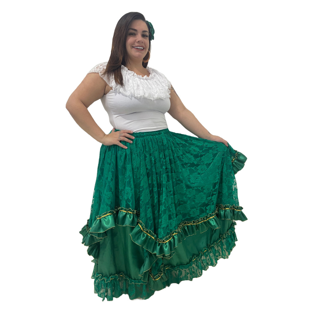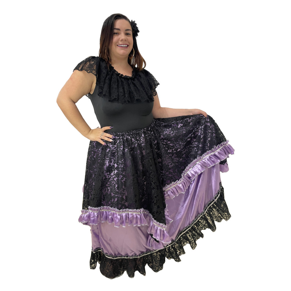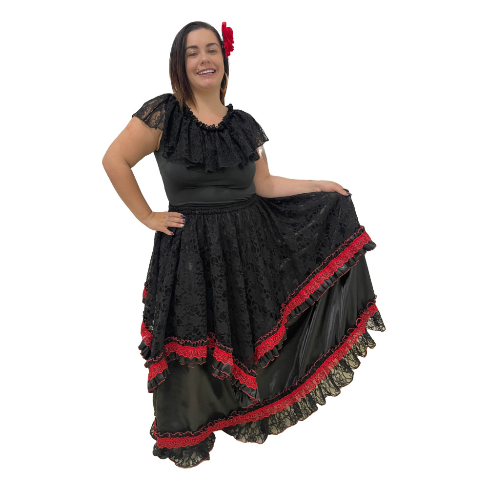 Saia Cigana 3m Rodada Cetim E Renda Pomba Gira Umbanda Candomblé