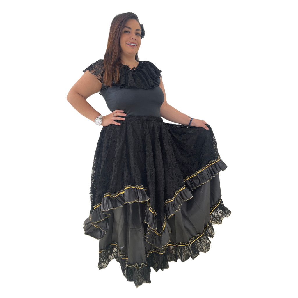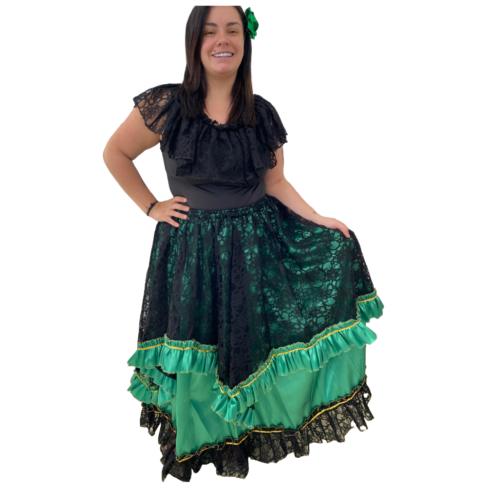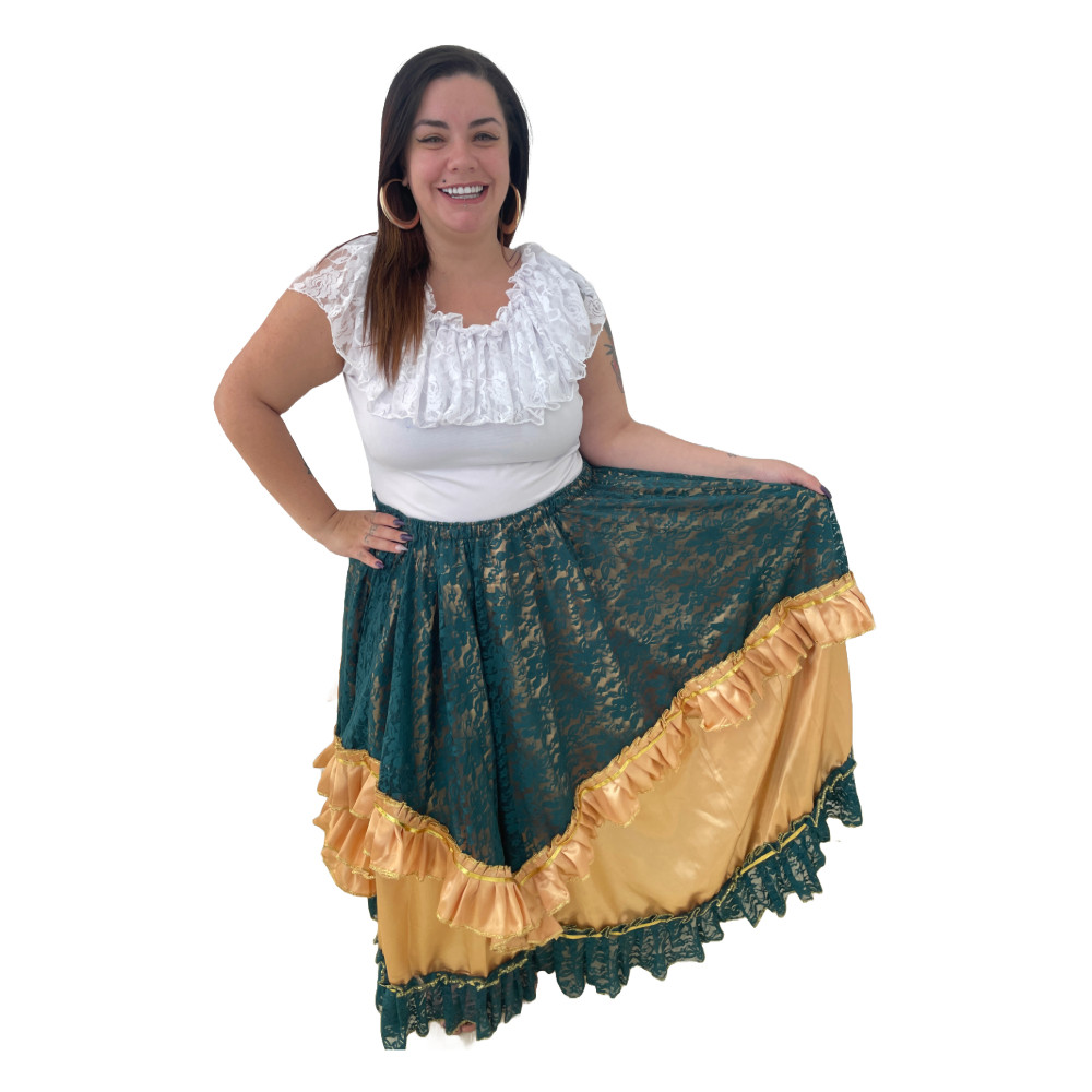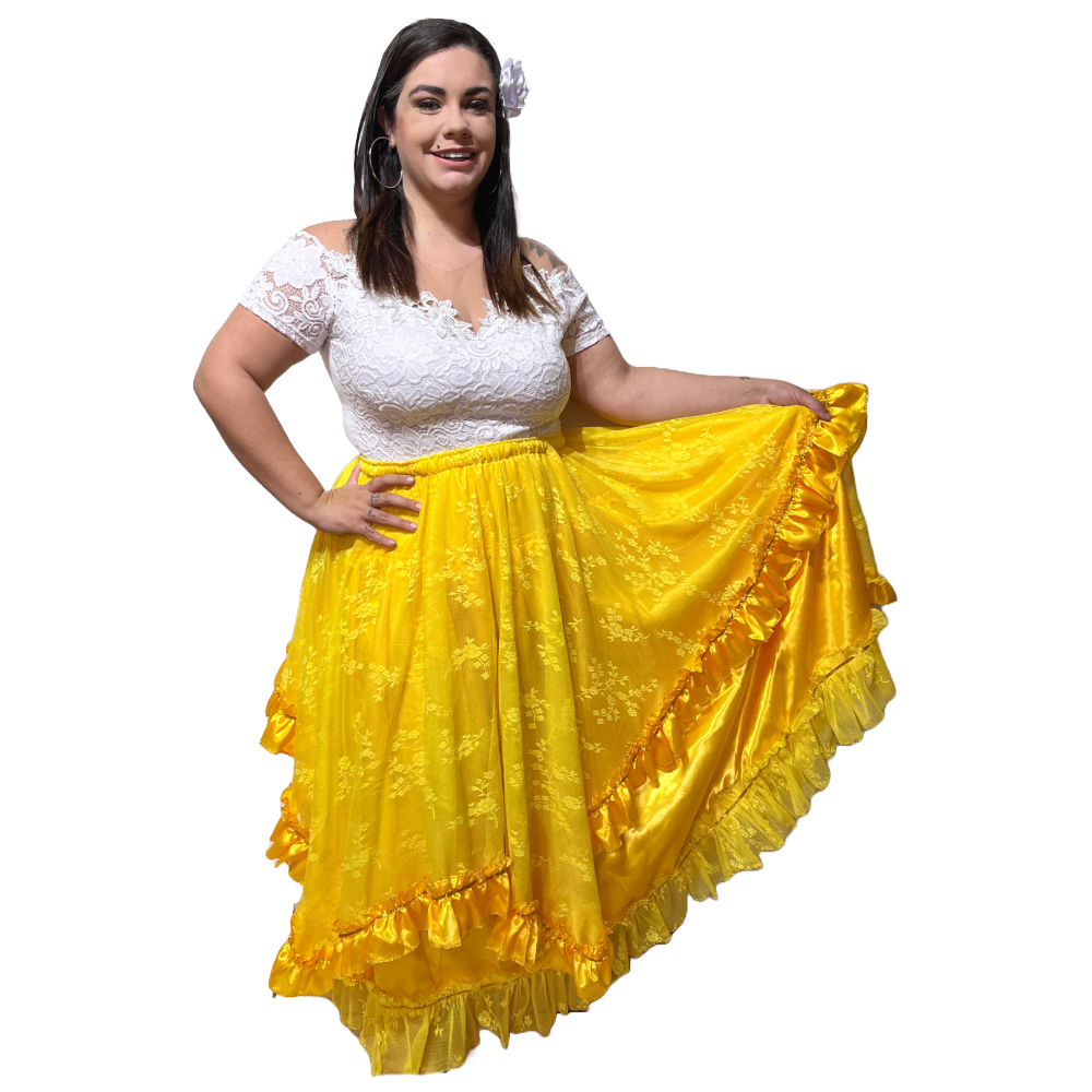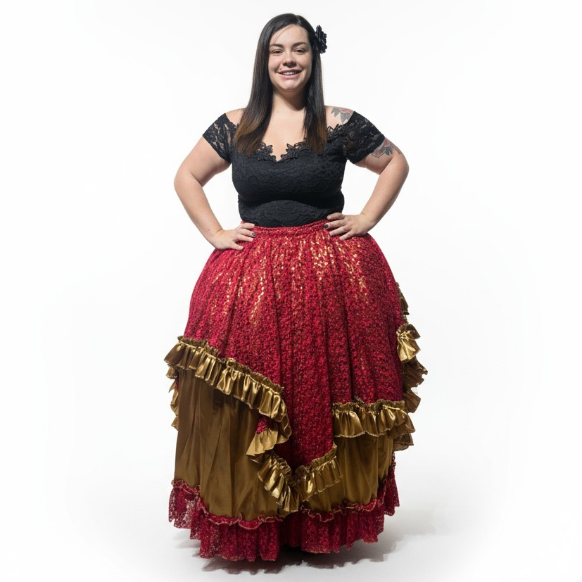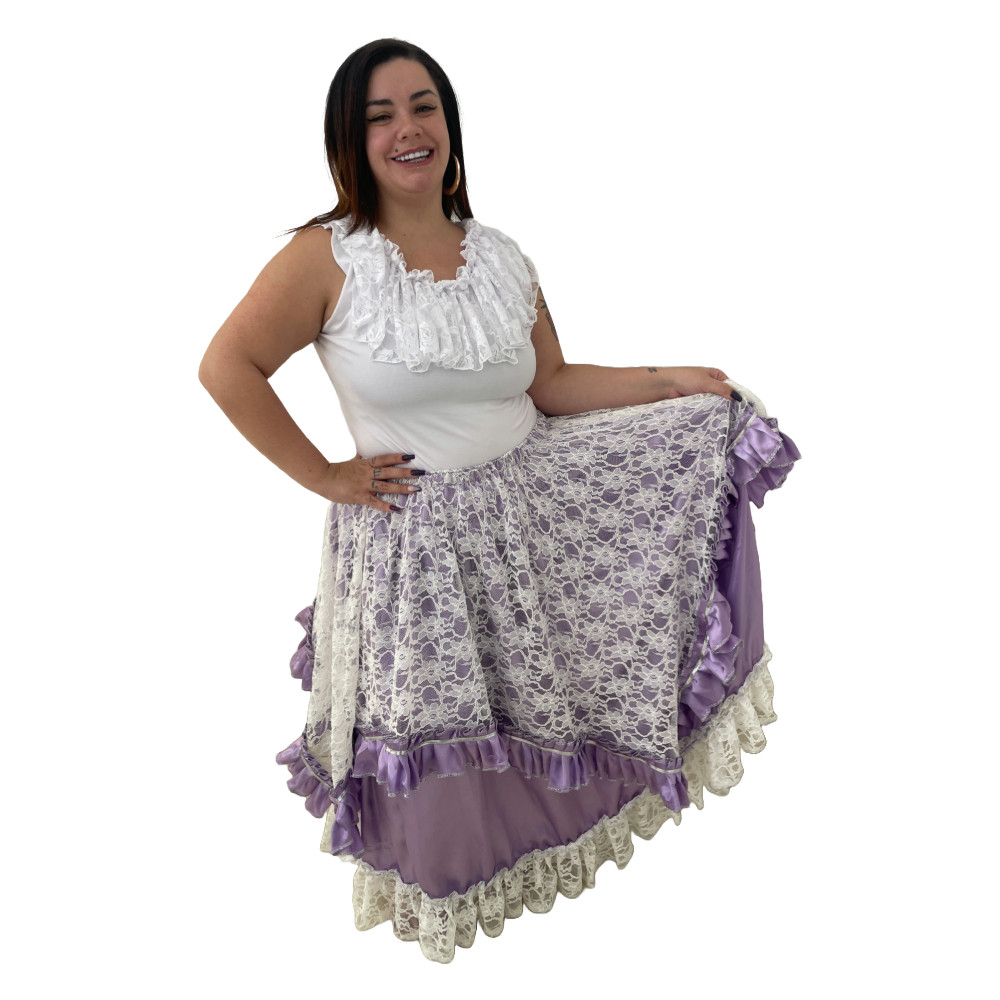 Saia Cigana 3m Rodada Cetim E Renda Pomba Gira Umbanda Candomblé