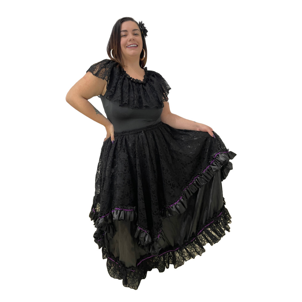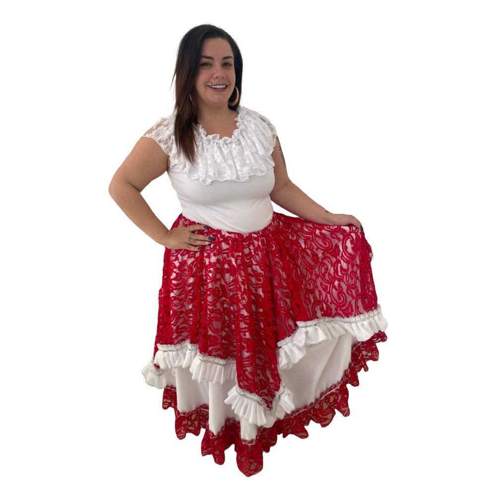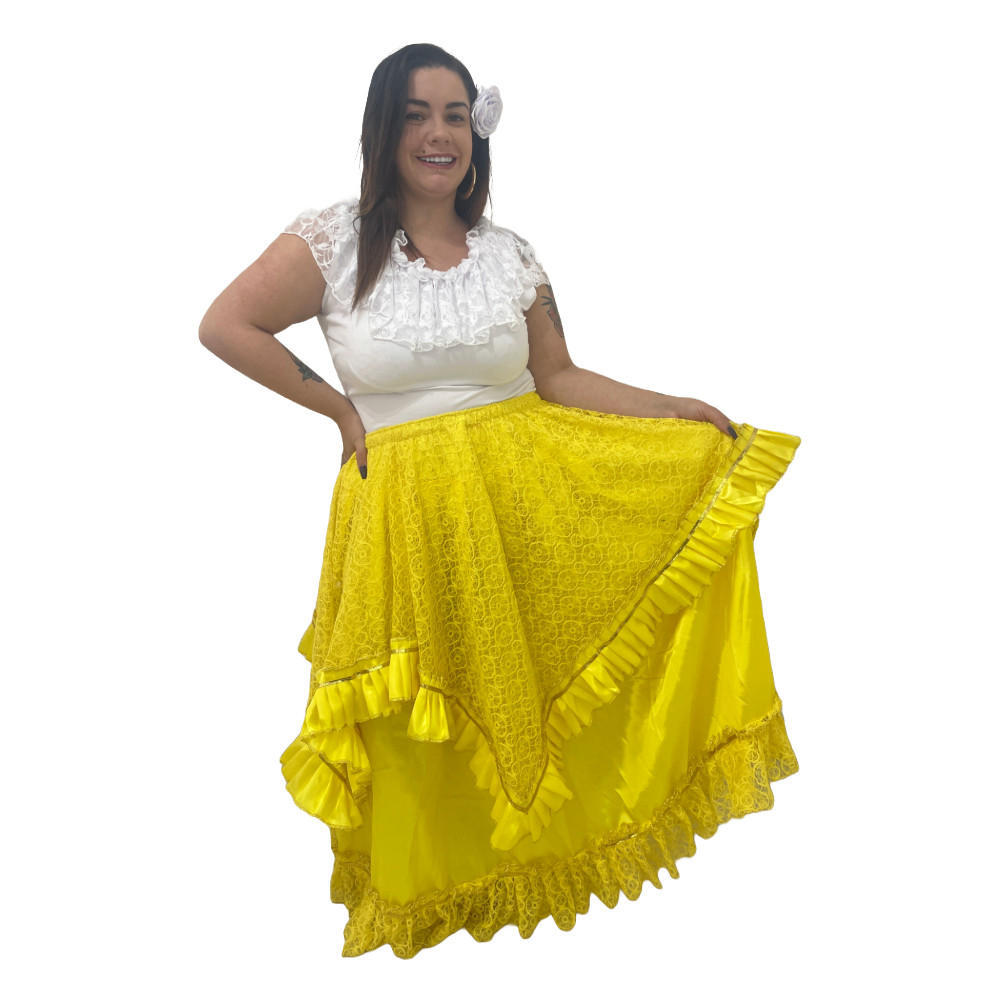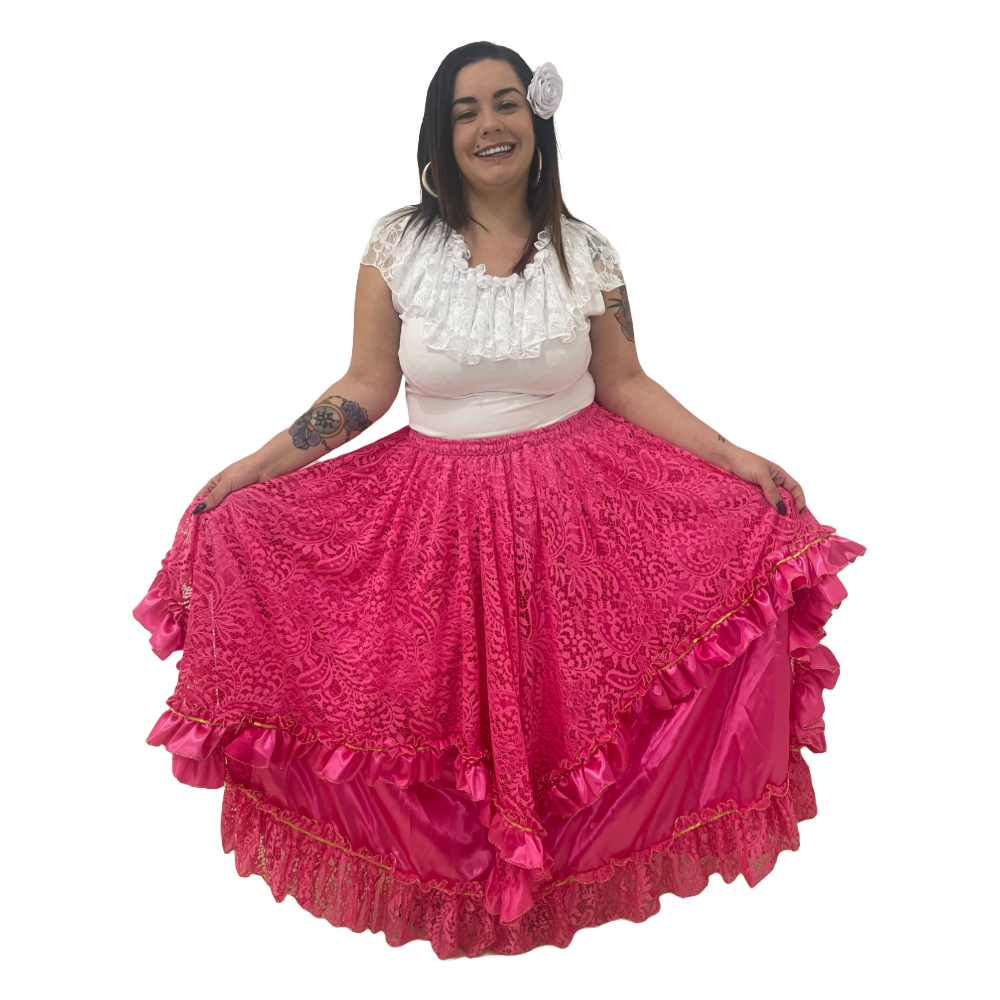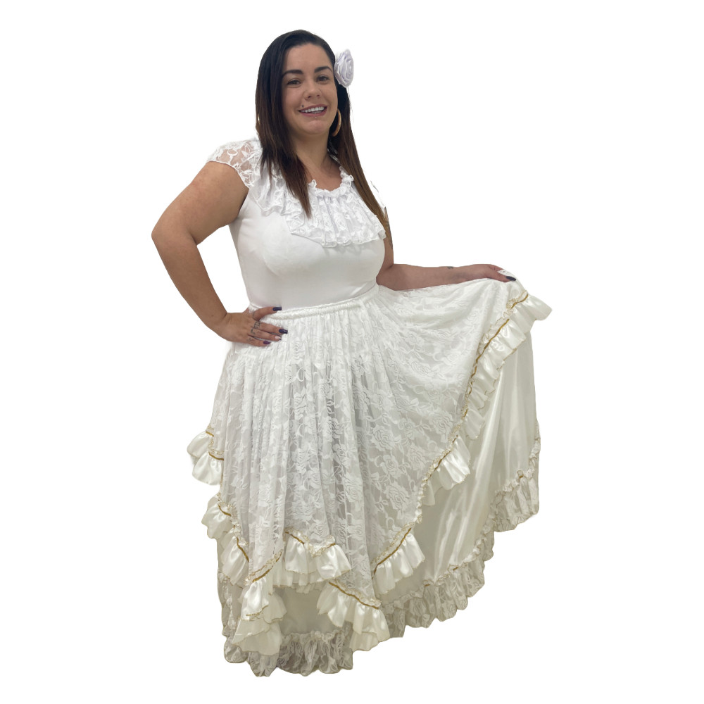Saia Cigana 3m Rodada Cetim E Renda Pomba Gira Umbanda Candomblé