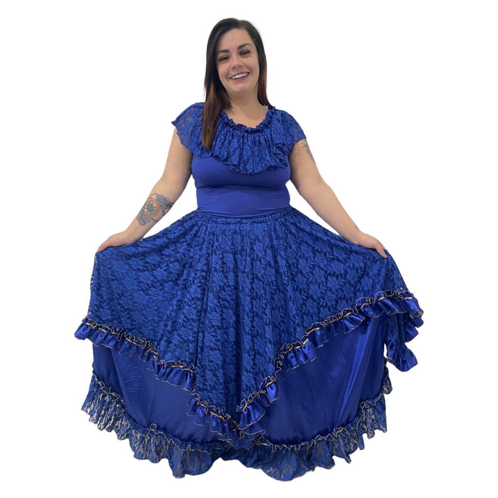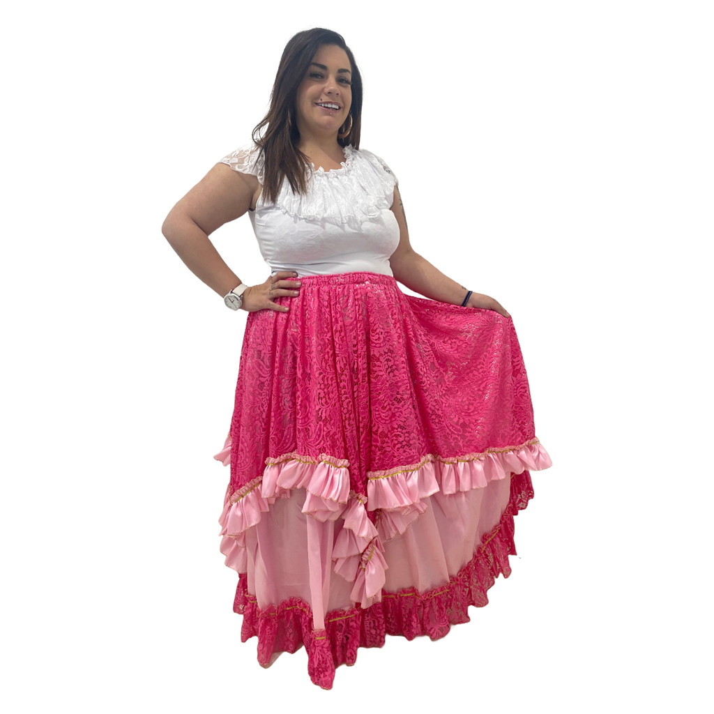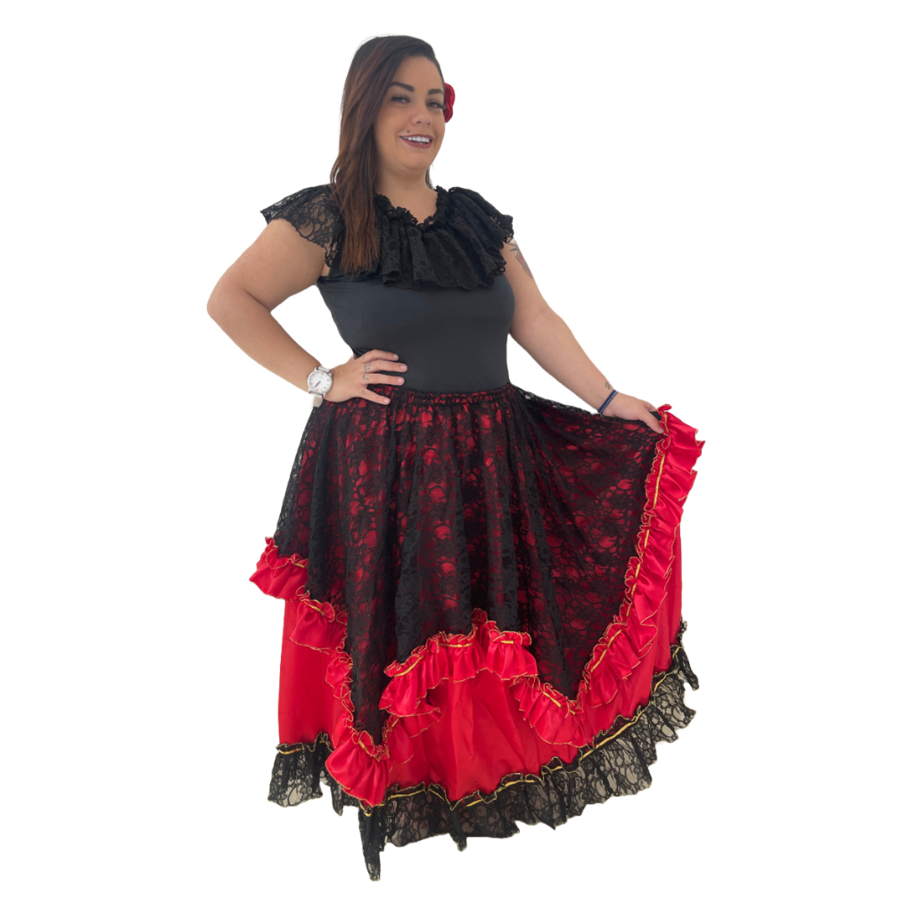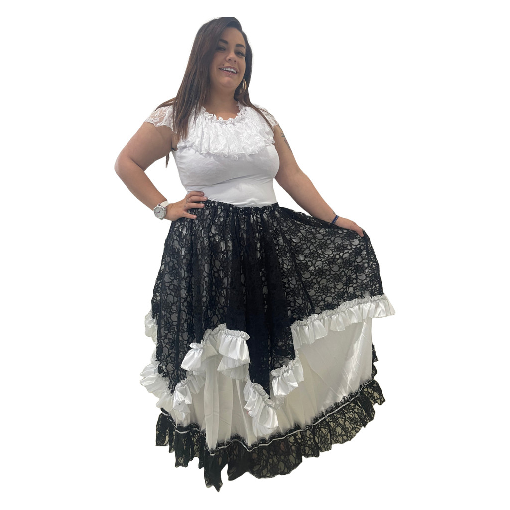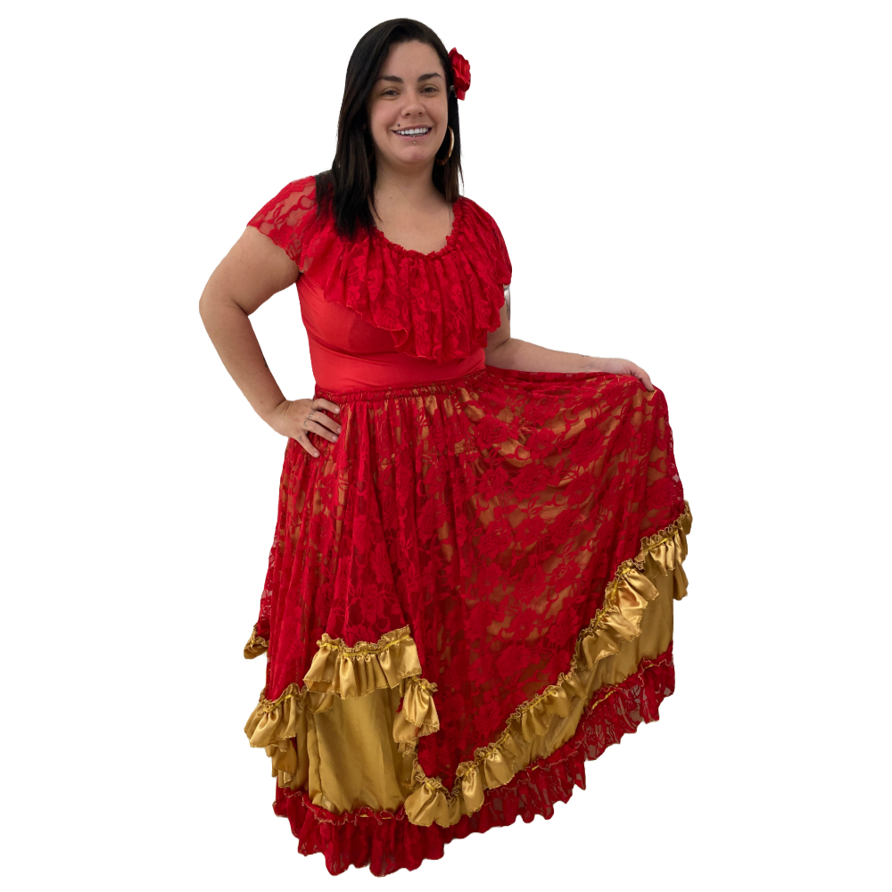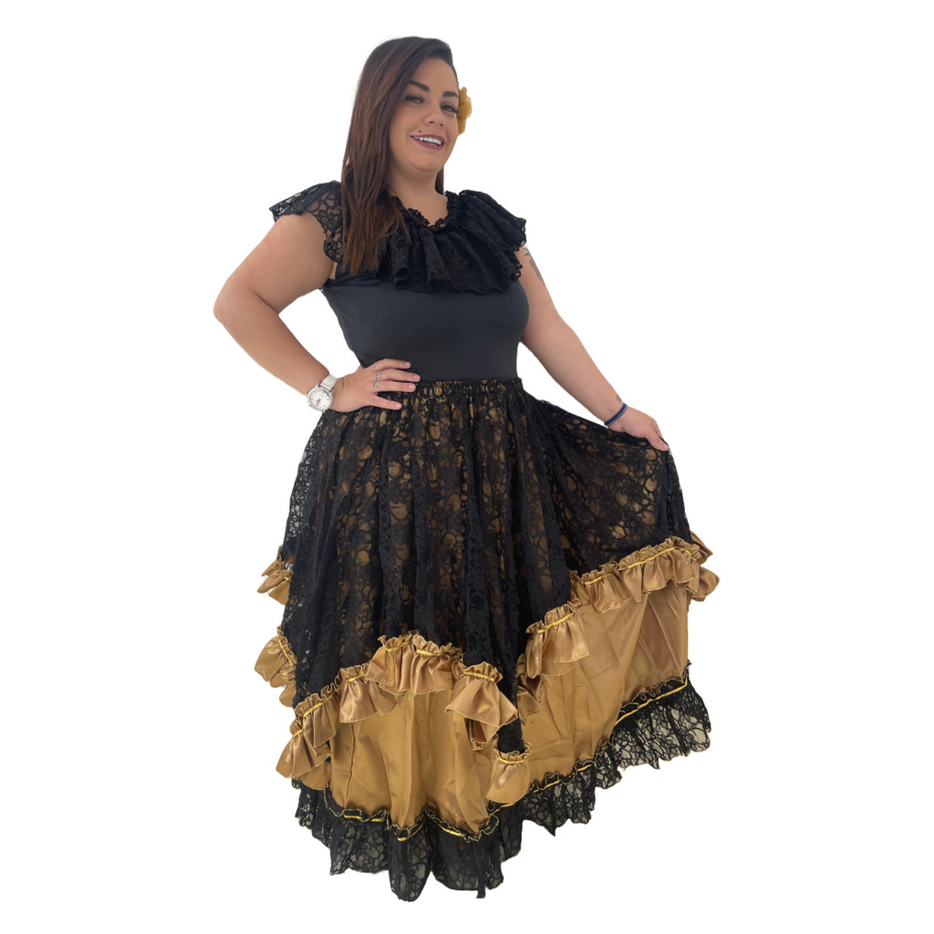 Saia Cigana 3m Rodada Cetim E Renda Pomba Gira Umbanda Candomblé