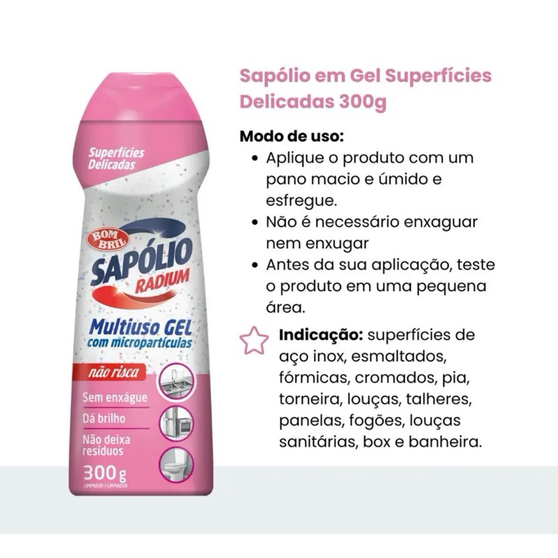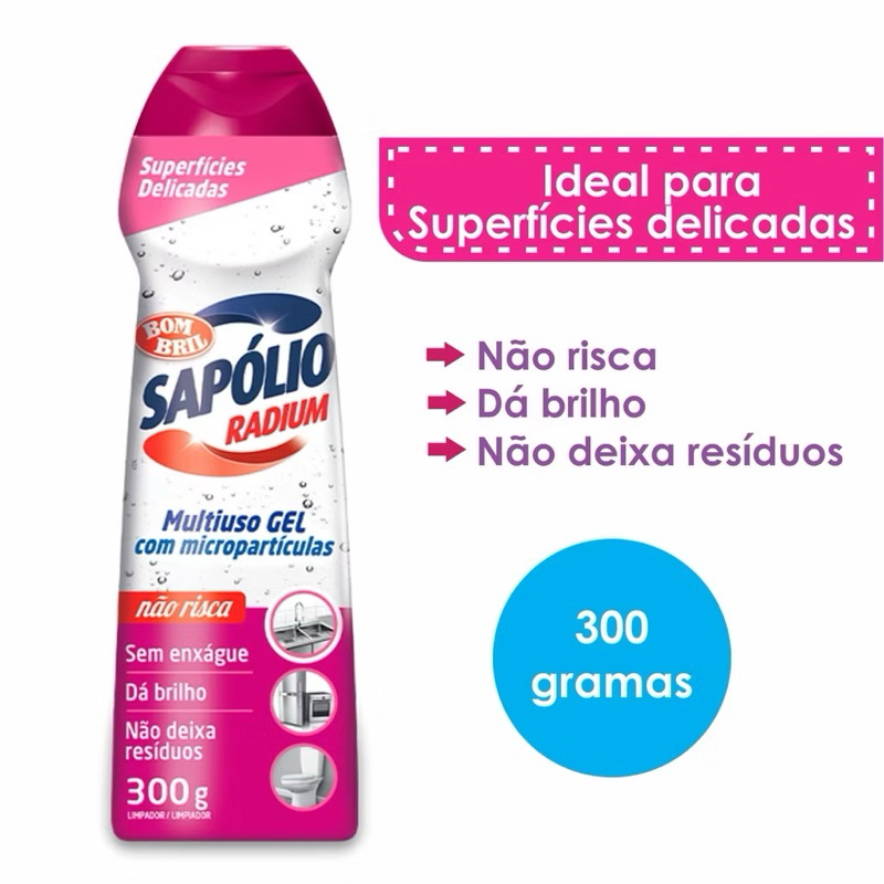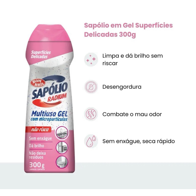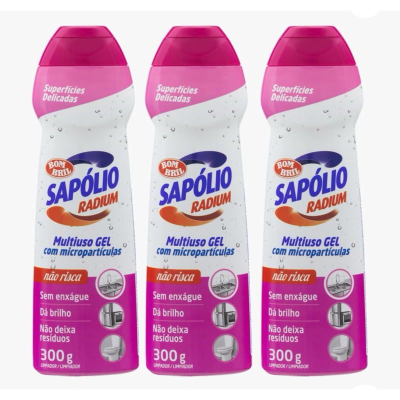kit 03 Unidades Multiuso Cooktop Gel Sapolio Radium Superfícies Delicadas Bombril
