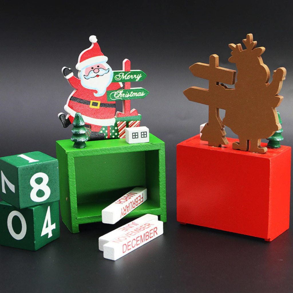 Calendário Natalino em Madeira 15x8cm decoração Natal Calendario Regressivo Advento