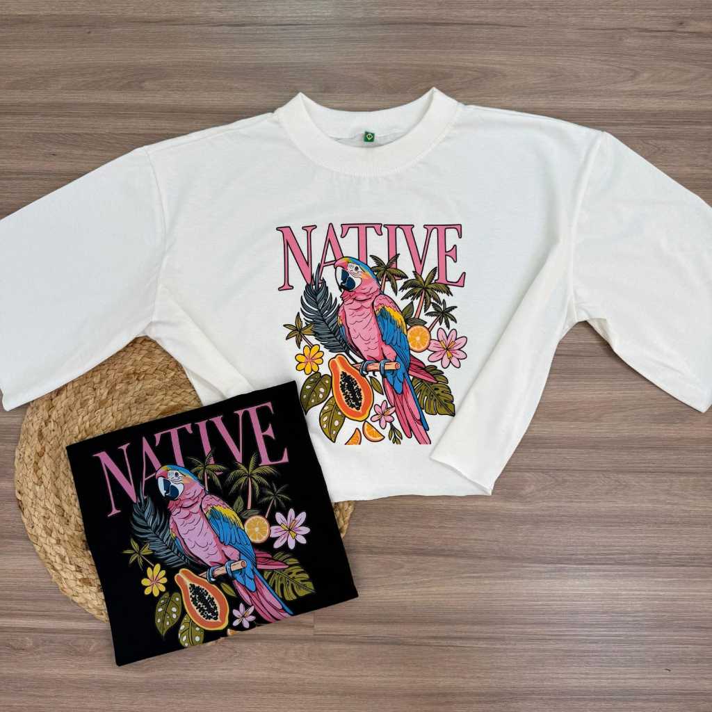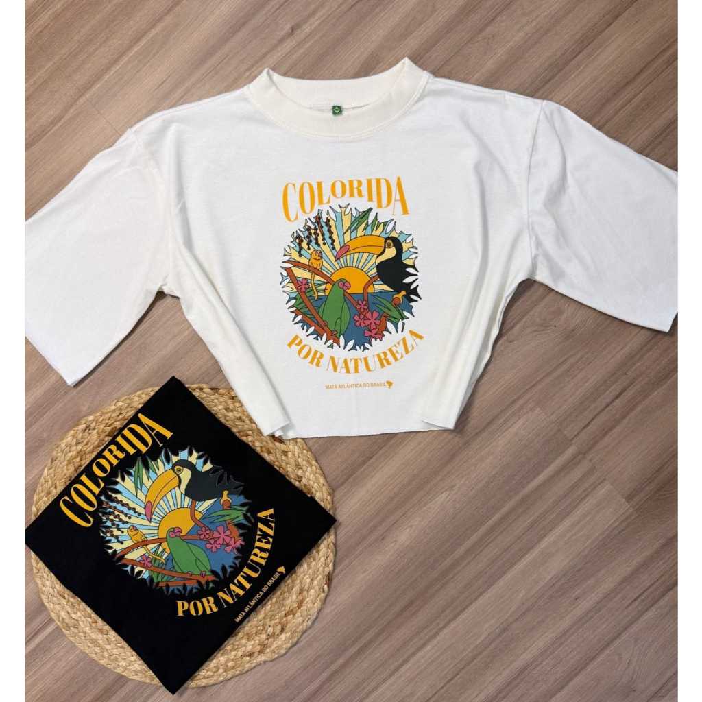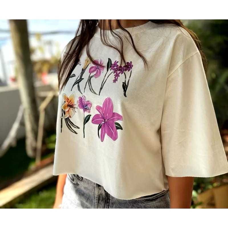 Blusa T-cropped Oversized Feminina Verão 2026. Varias estampas disponíveis.