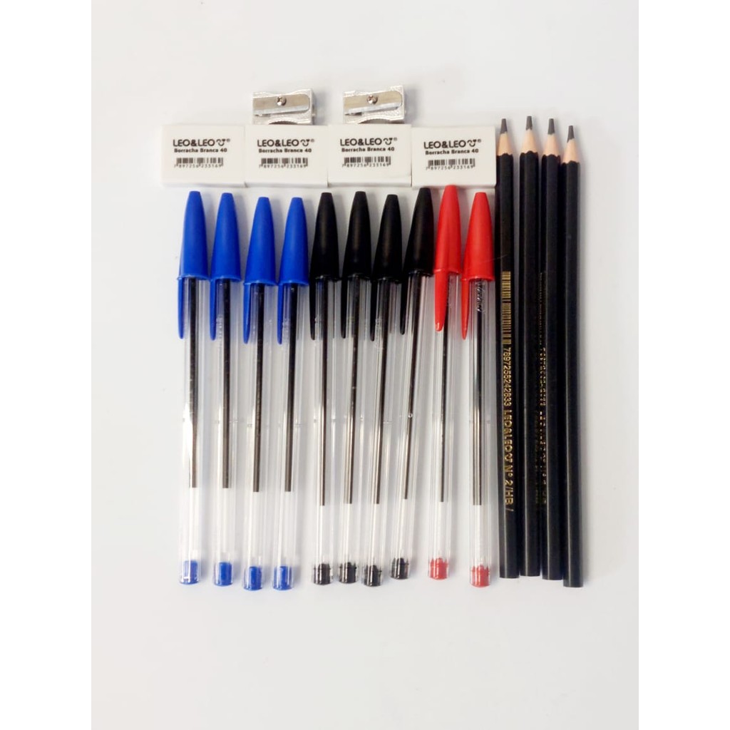 KIT BASICO ESCOLAR 20 ITEM ESCRITA CANETA BIC LAPIS BORRACHA