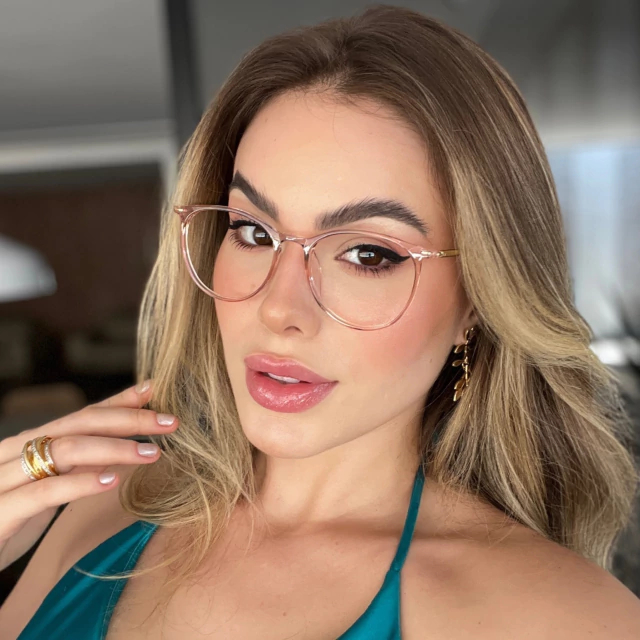 Óculos Feminino Redondo com Lente Transparente Proteção UV