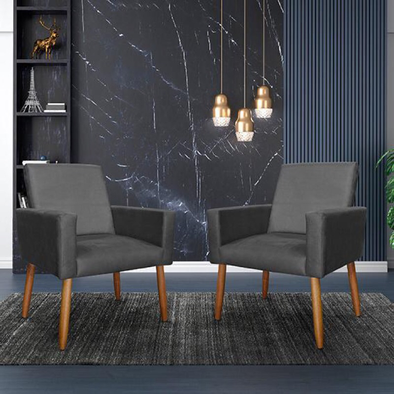 kit NINA 2 poltrana Decorativa pés palito CINZA