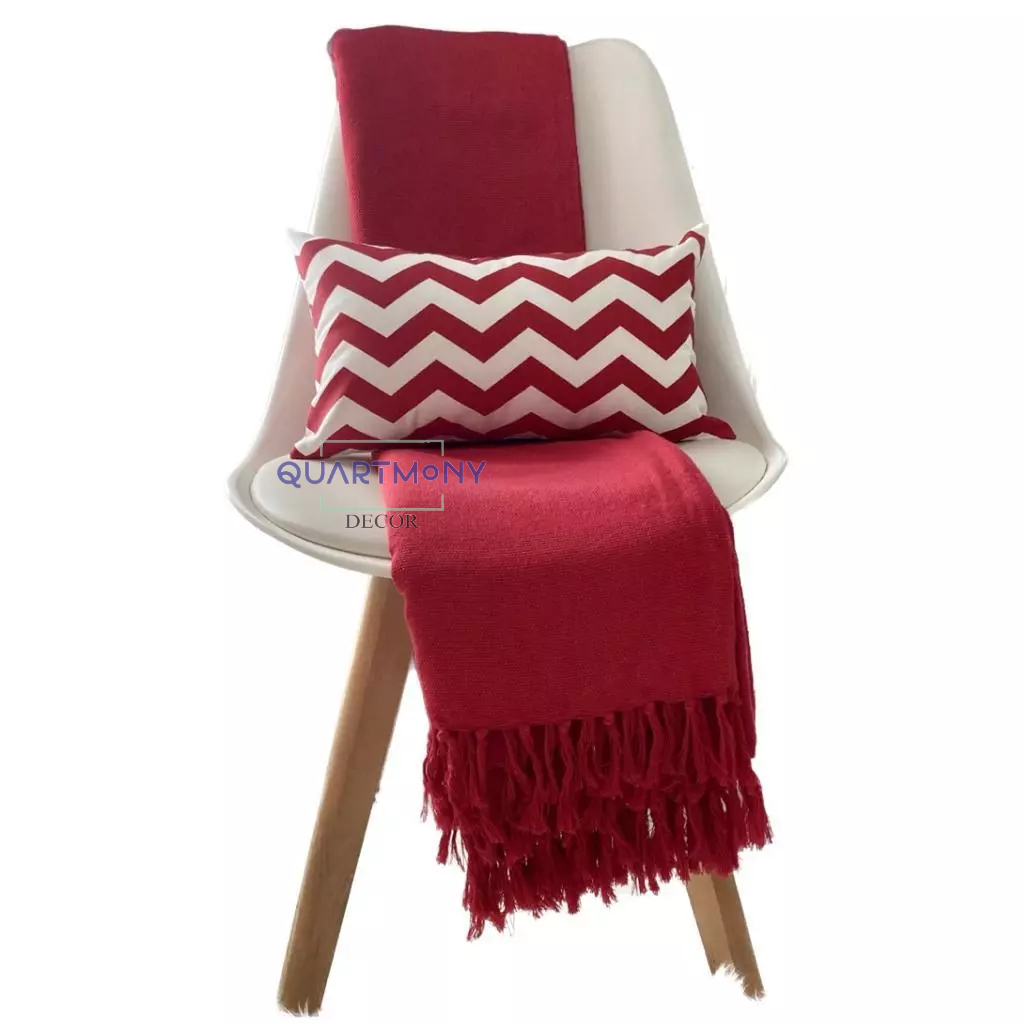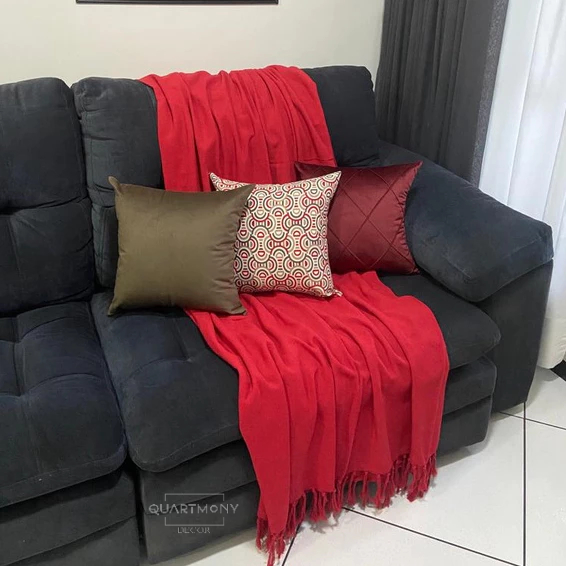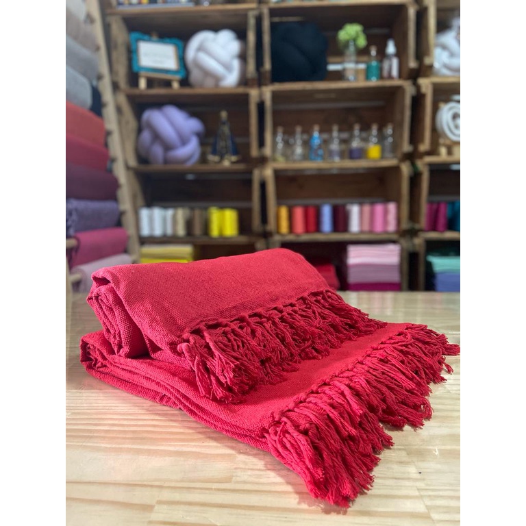 Manta Grande Sofá Cama Vermelho Algodão Decorativa Artesal Estilo Boho Chic Rustico Protetora