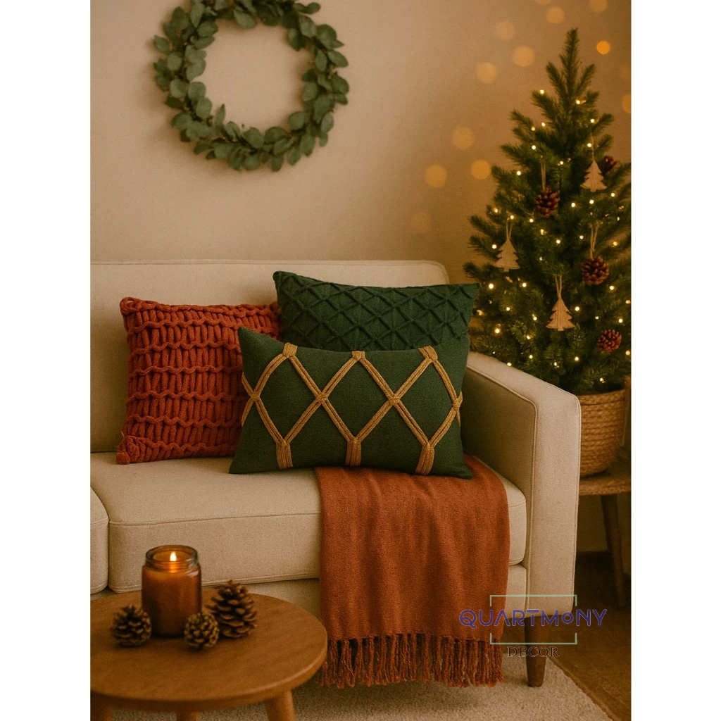 Kit Almofada Corda Terracota Verde Musgo Caramelo Macrame Artesanal Estilo Decorativa Carnaval