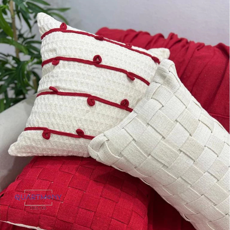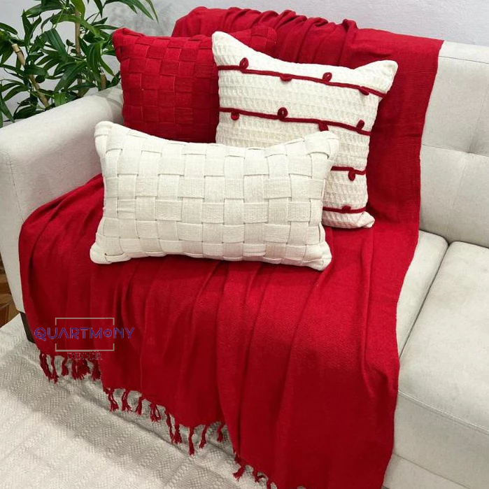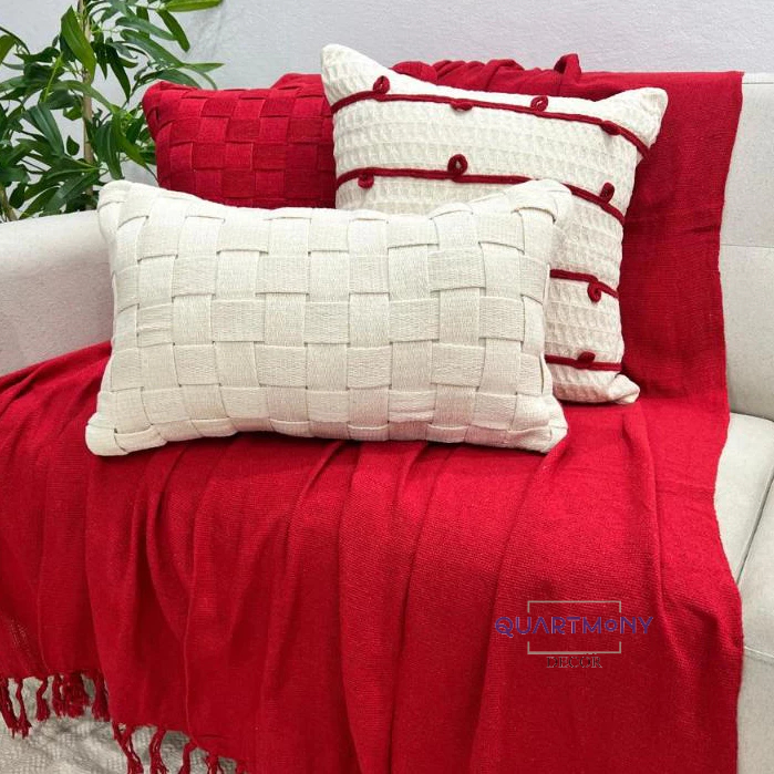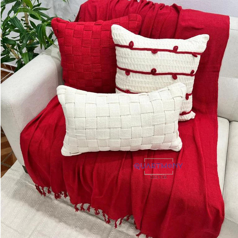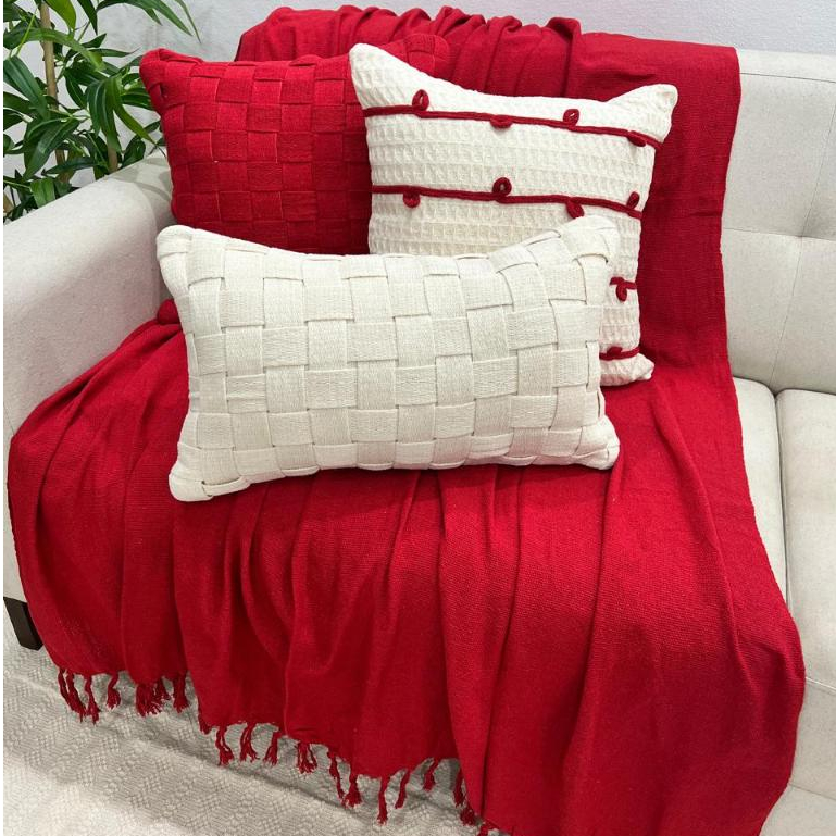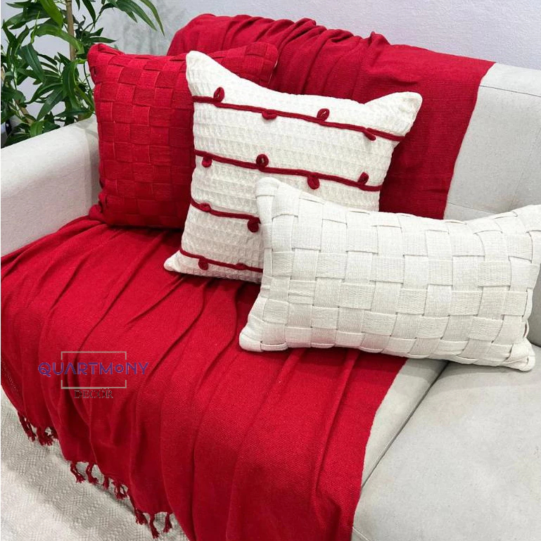Kit Capa Almofada Fita Vermelho Trancê Rustica Artesanal Sofa Cama Trancelim Decorativa Carnaval