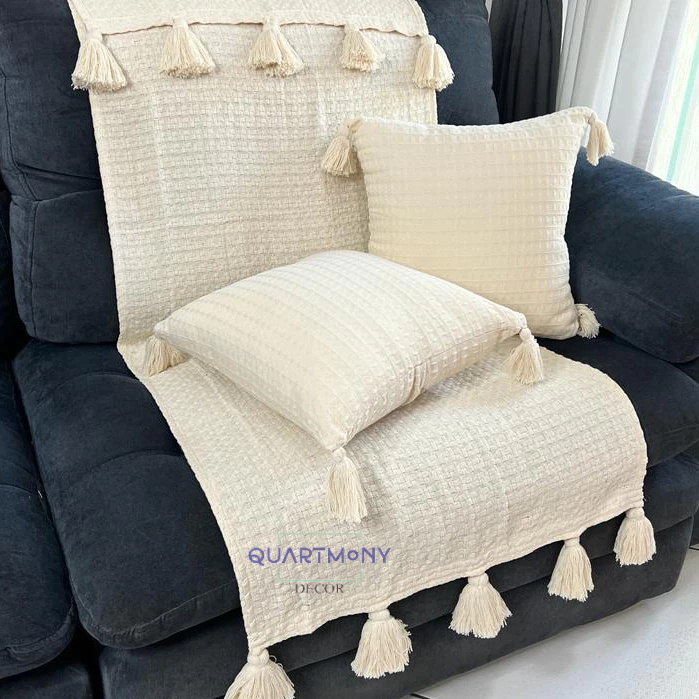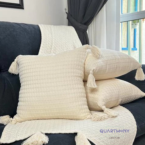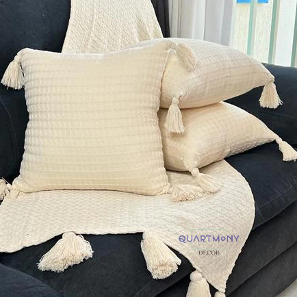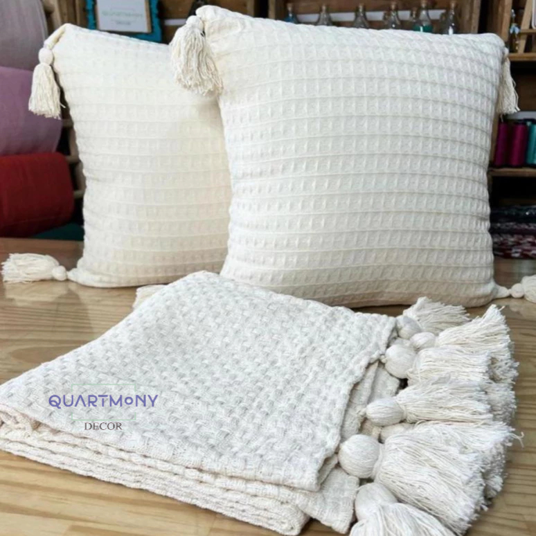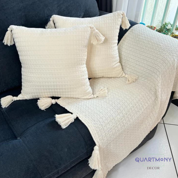 Kit 2 Capa Almofada Pompom Cru Algodão Almofadas Macrame Artesanal Decorativa Boho Chic Carnaval