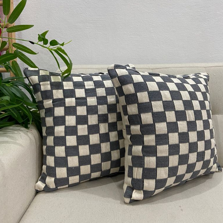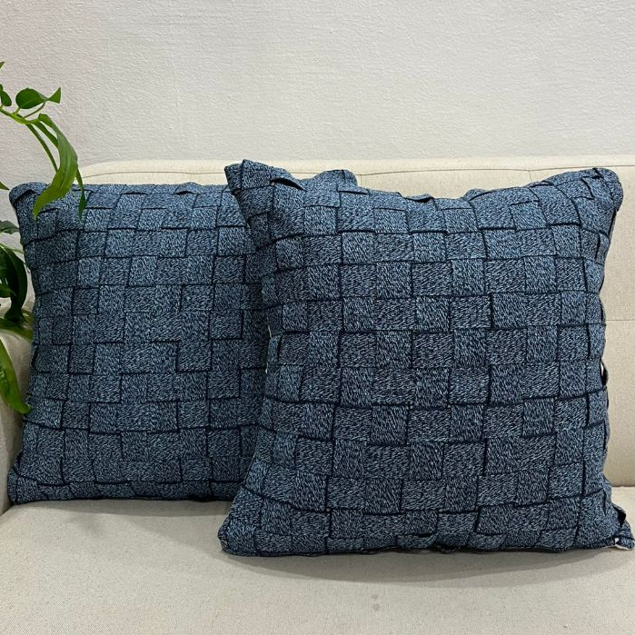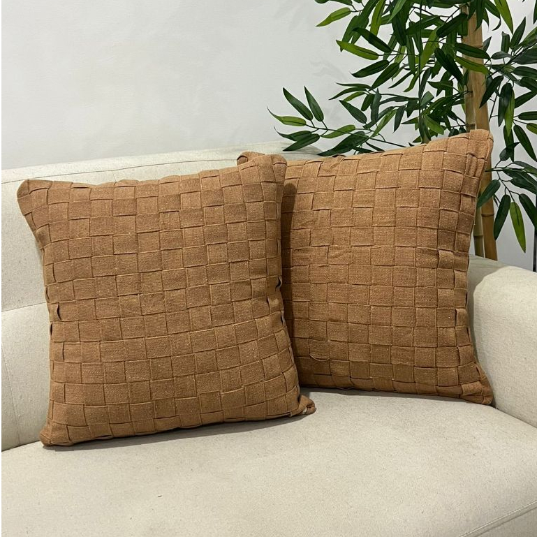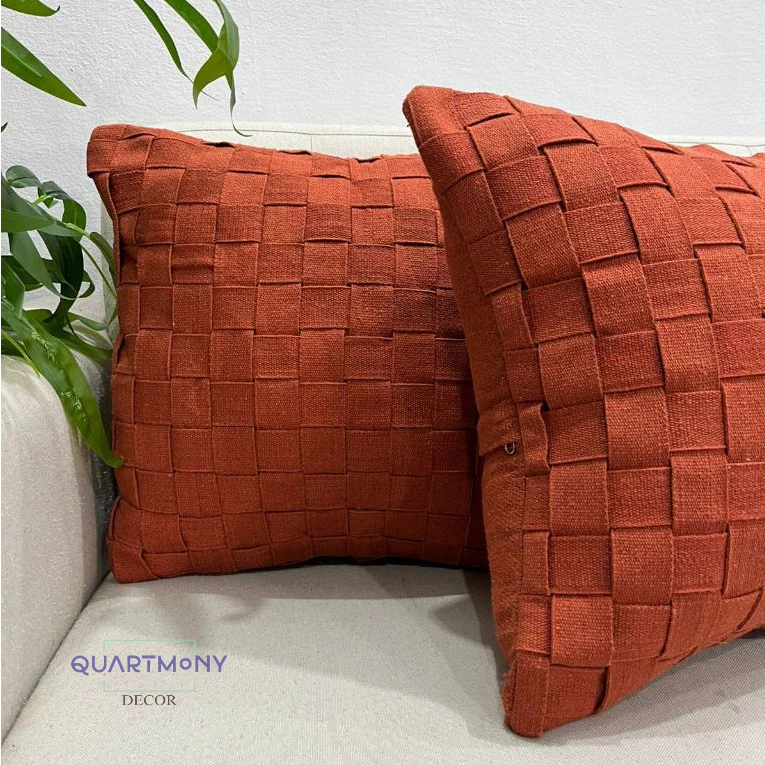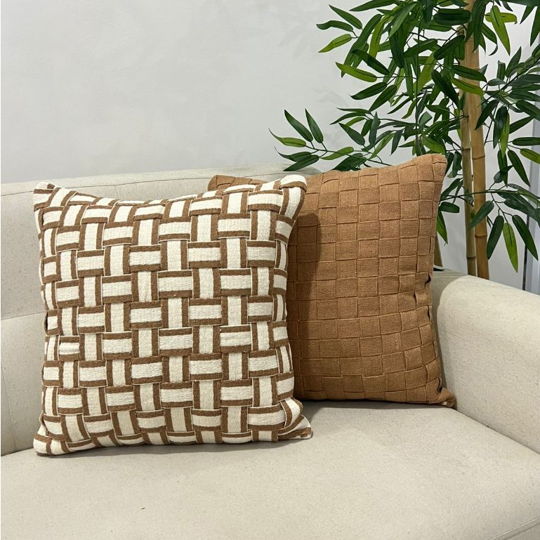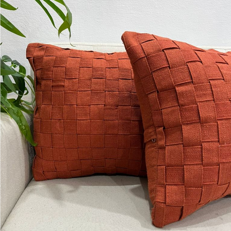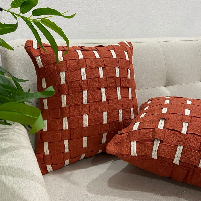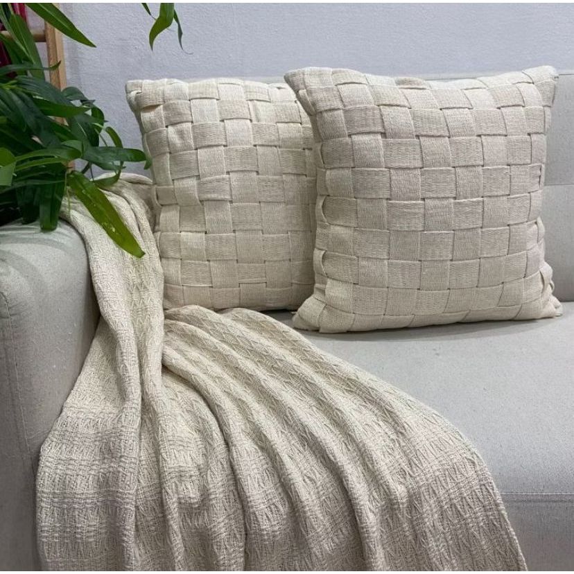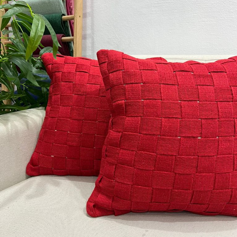 Kit 2 Capas Almofada Fita Trançada Colorida Decorativa Algodão Artesanal Rustica Boho Chic Carnaval