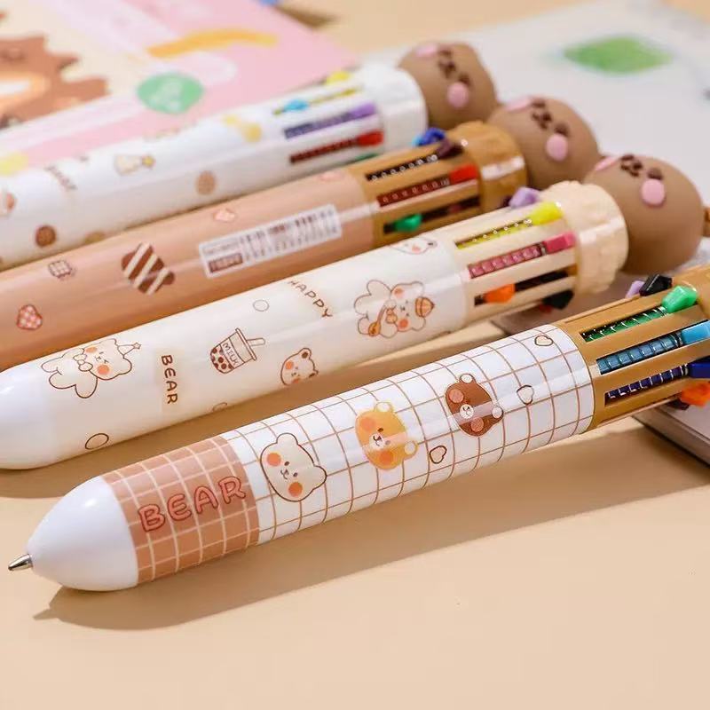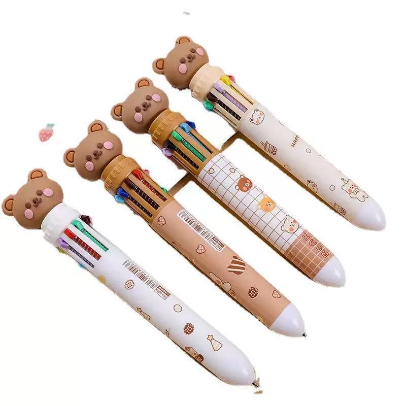 Kit 4/8/12 Canetas Esferográficas 10 Cores – Urso Coca Fofo Kawaii Multicoloridas