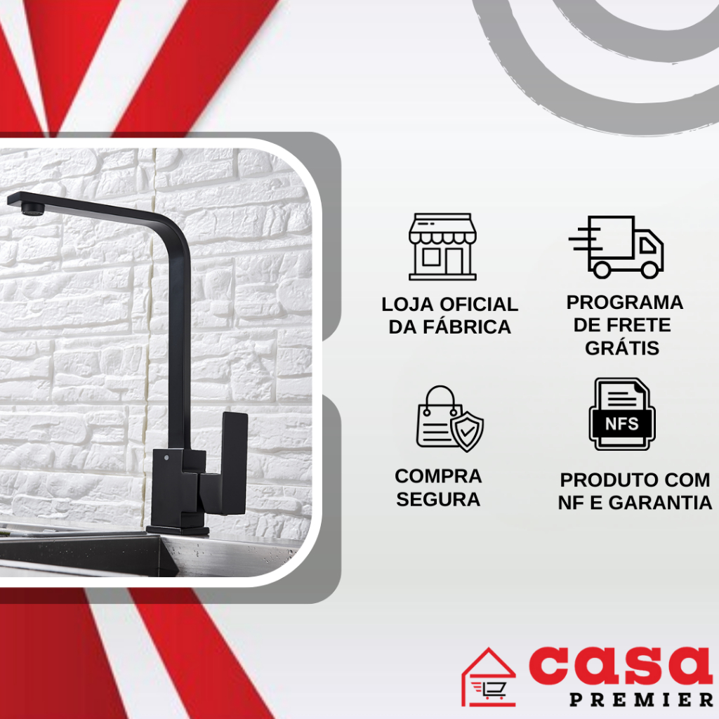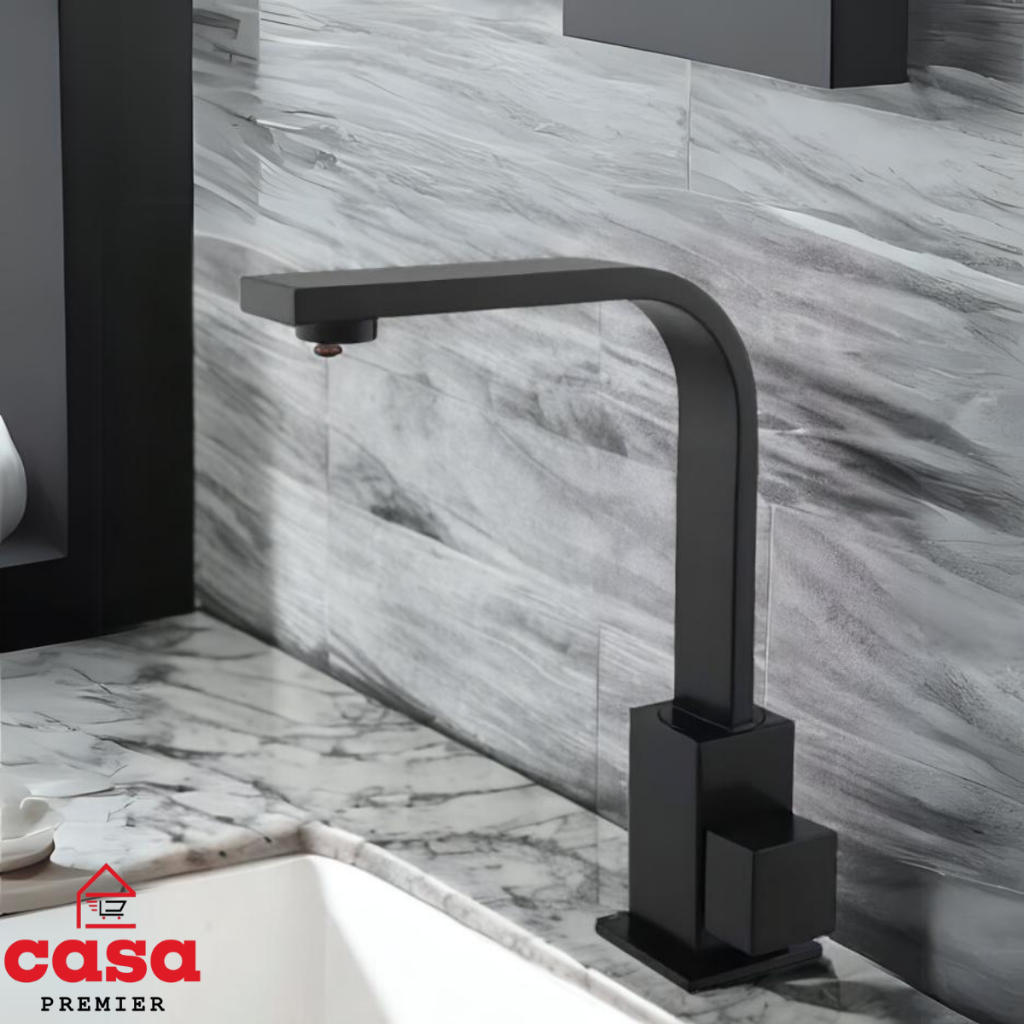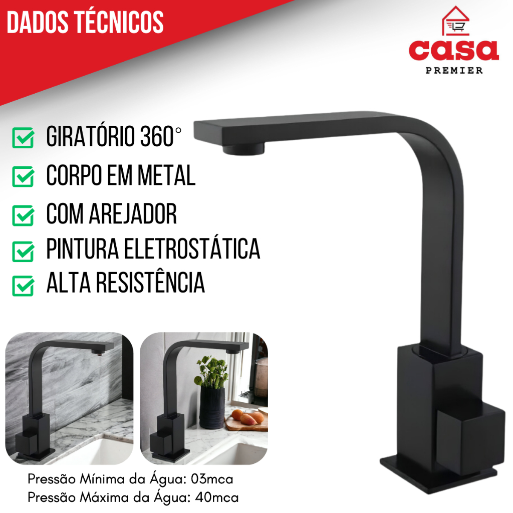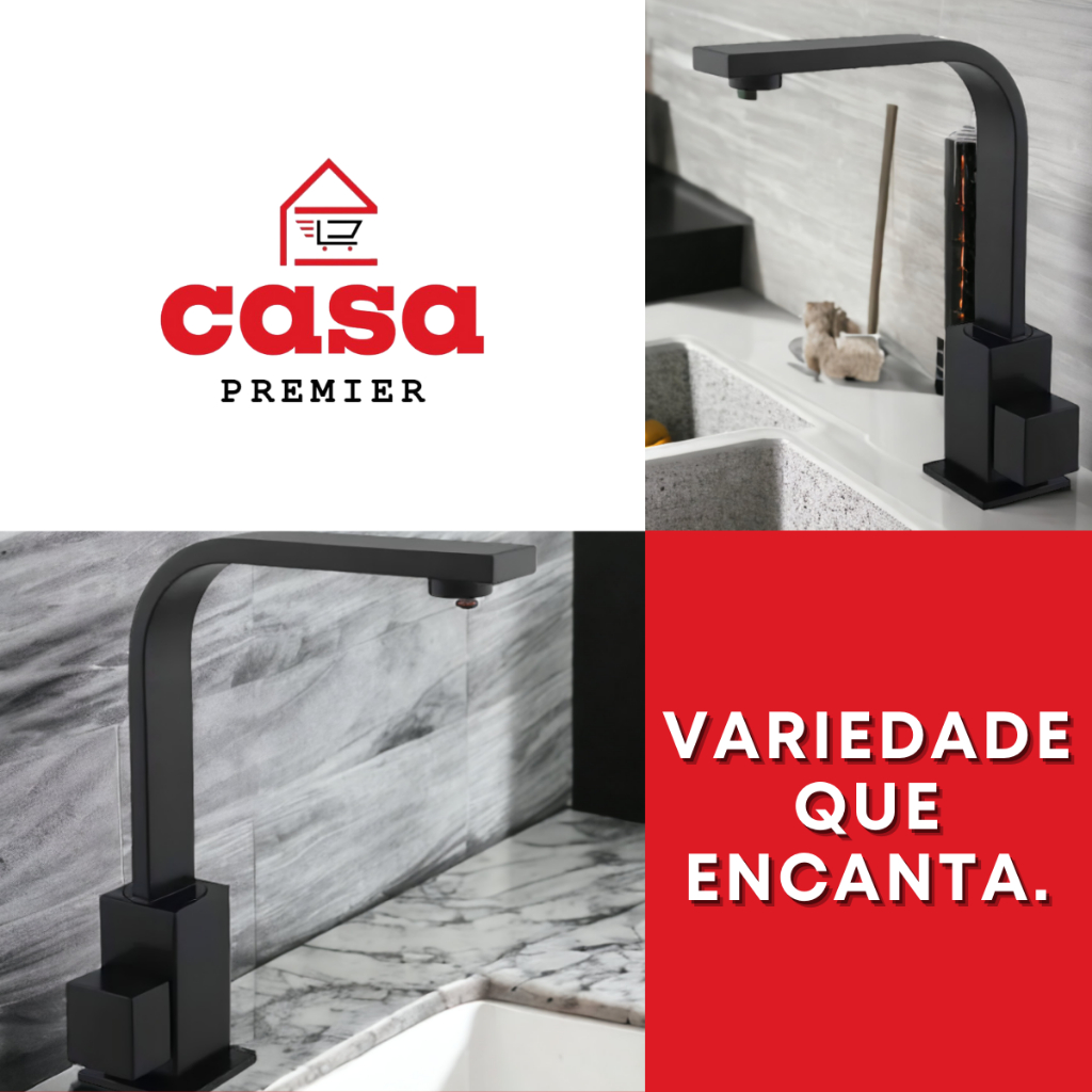 Torneira de Pia Lavatório Banheiro Lavabo Quadrix Preto Premier Cano Reto Preta Black Luxo Metal
