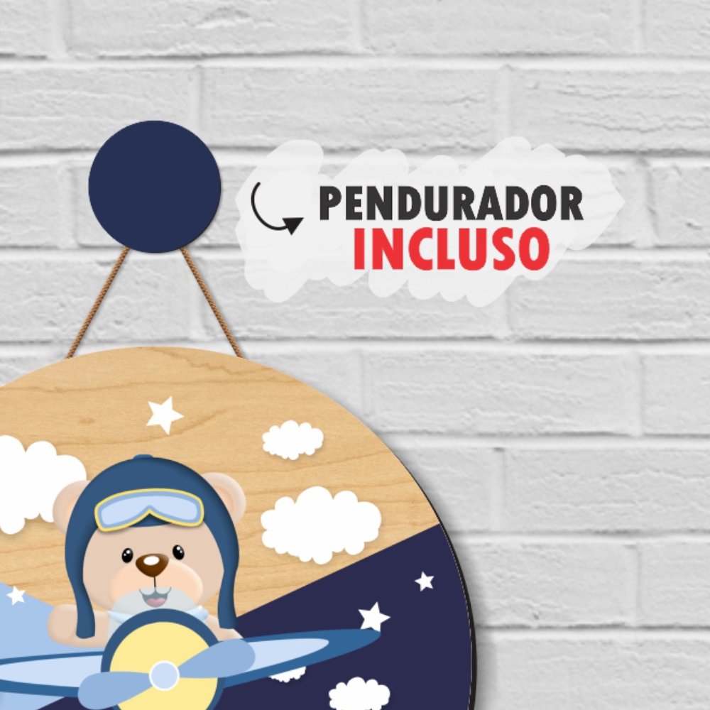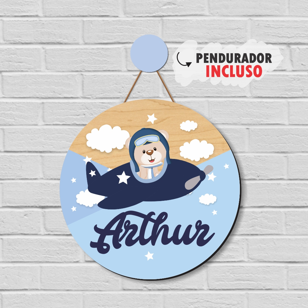 Enfeite Porta Maternidade Urso Aviador, Avião - Nome personalizado - Decoração para quarto! GUIRLANDA