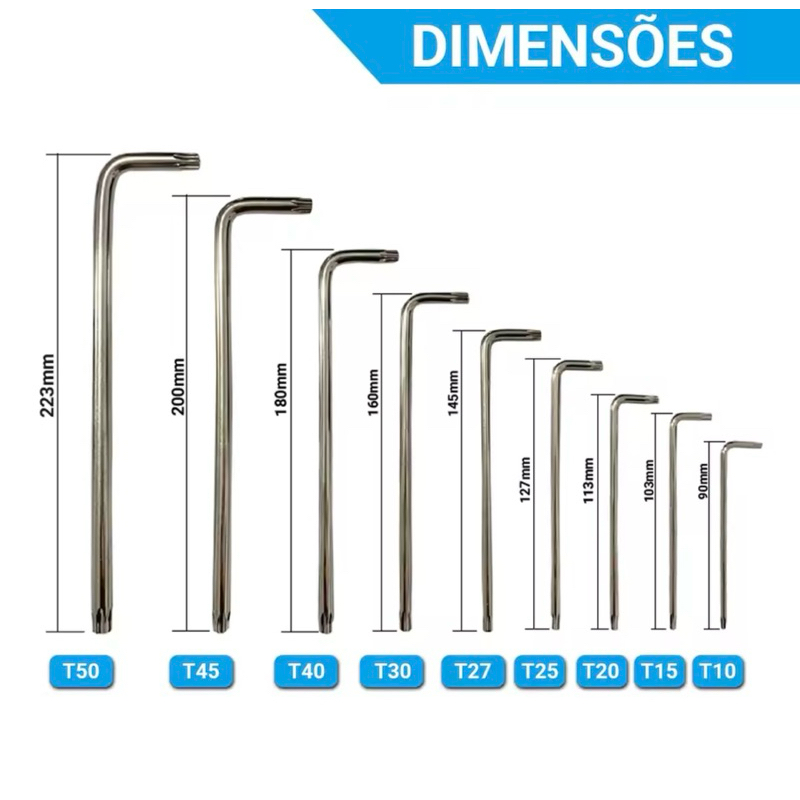 Kit Jogo de Chave Torx + Allen Grande Longa Com Furo