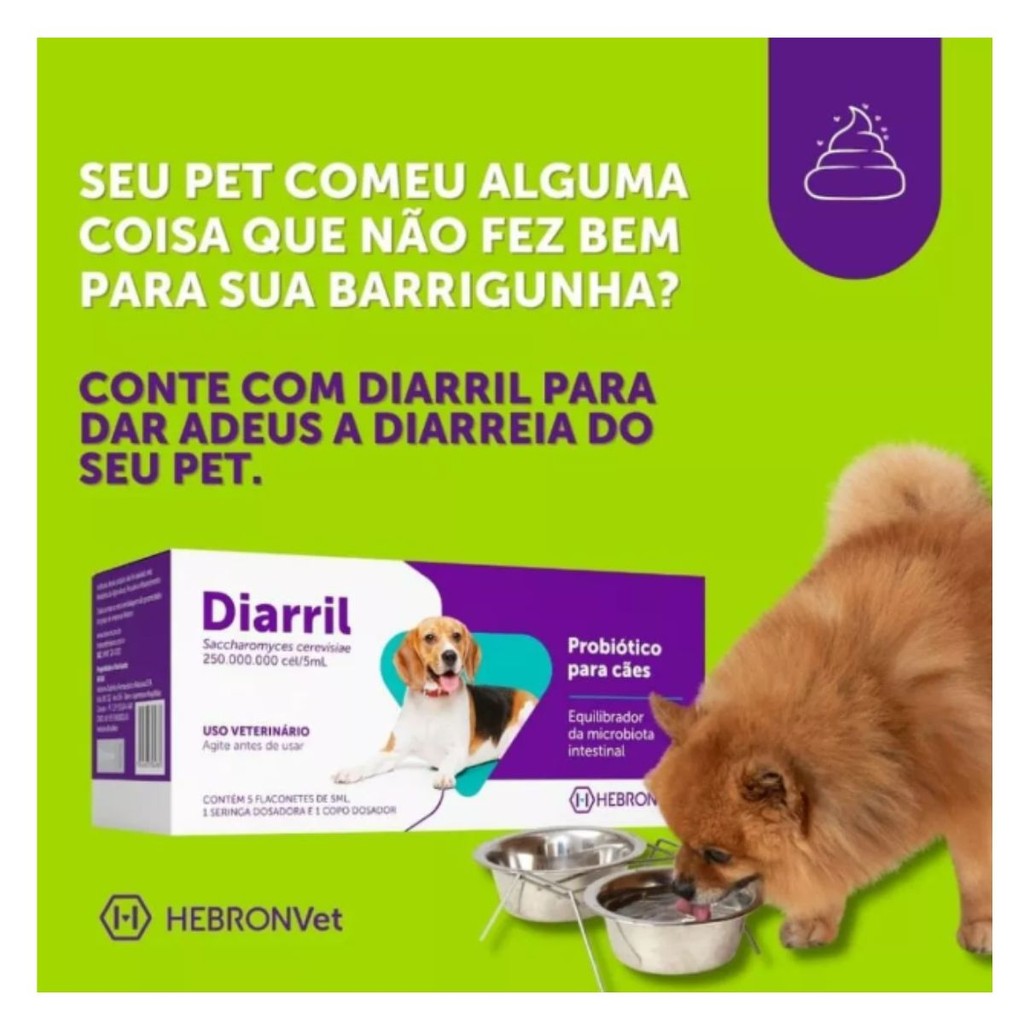 Probiótico Para Cães Diarril OR 5 Flaconetes de 5ml