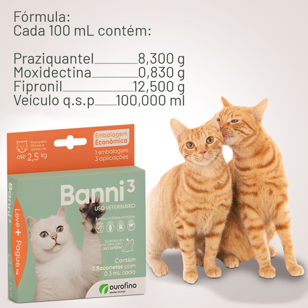 Banni 3 Antipulgas p/ Gatos até 2,5kg 0,3 ml C/3 Flaconetes