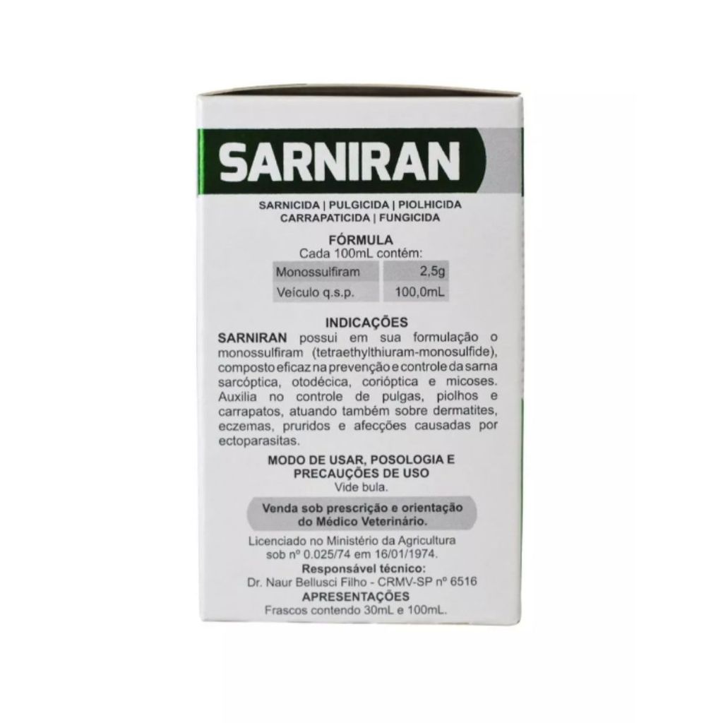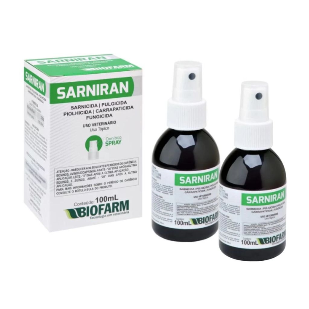 02 Sarniran 100ml Tratamento Contra Sarna em Cães e Gatos