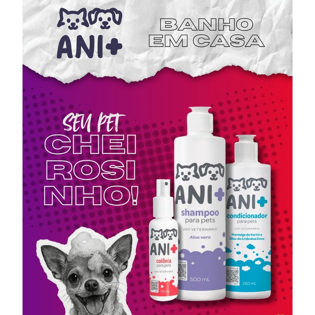 Kit Ani+ Completo Shampoo Condicionador Colônia Cães e Gatos