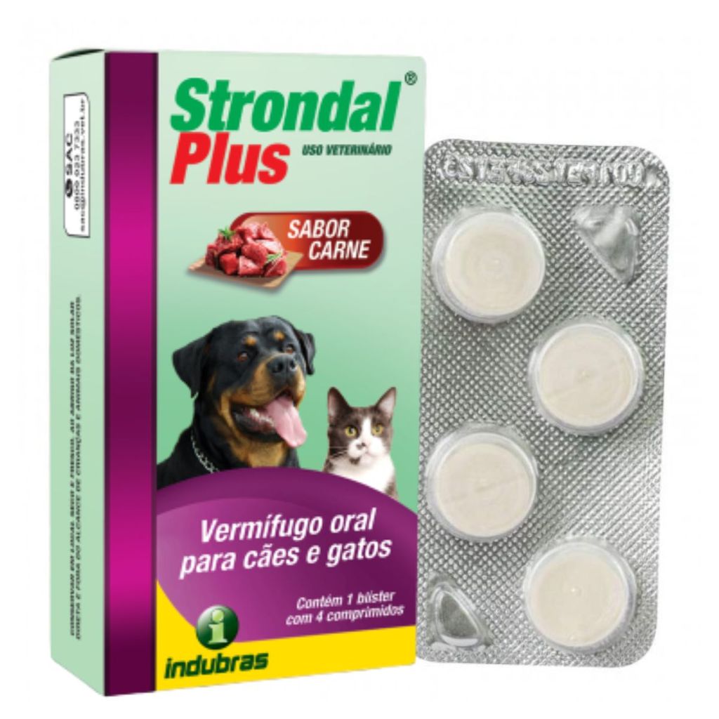 Strondal Plus Carne Vermífugo Com 4 Comprimidos Cães e Gatos